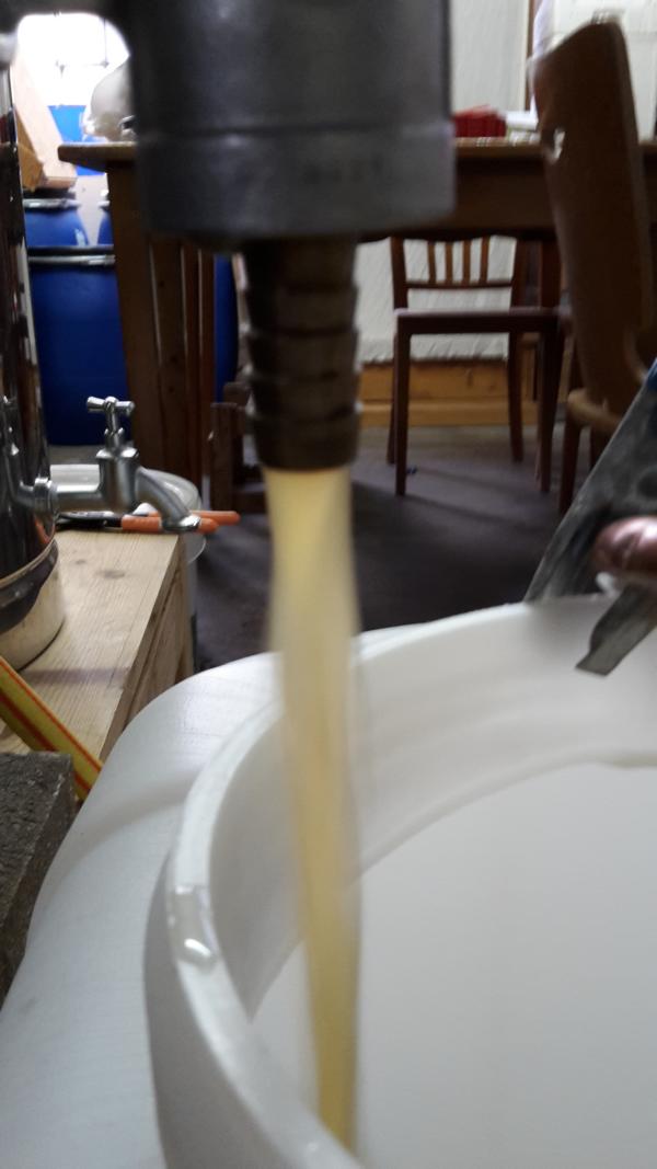 2. Bild: die ersten ein zhwei liter werden noch gefiltert.