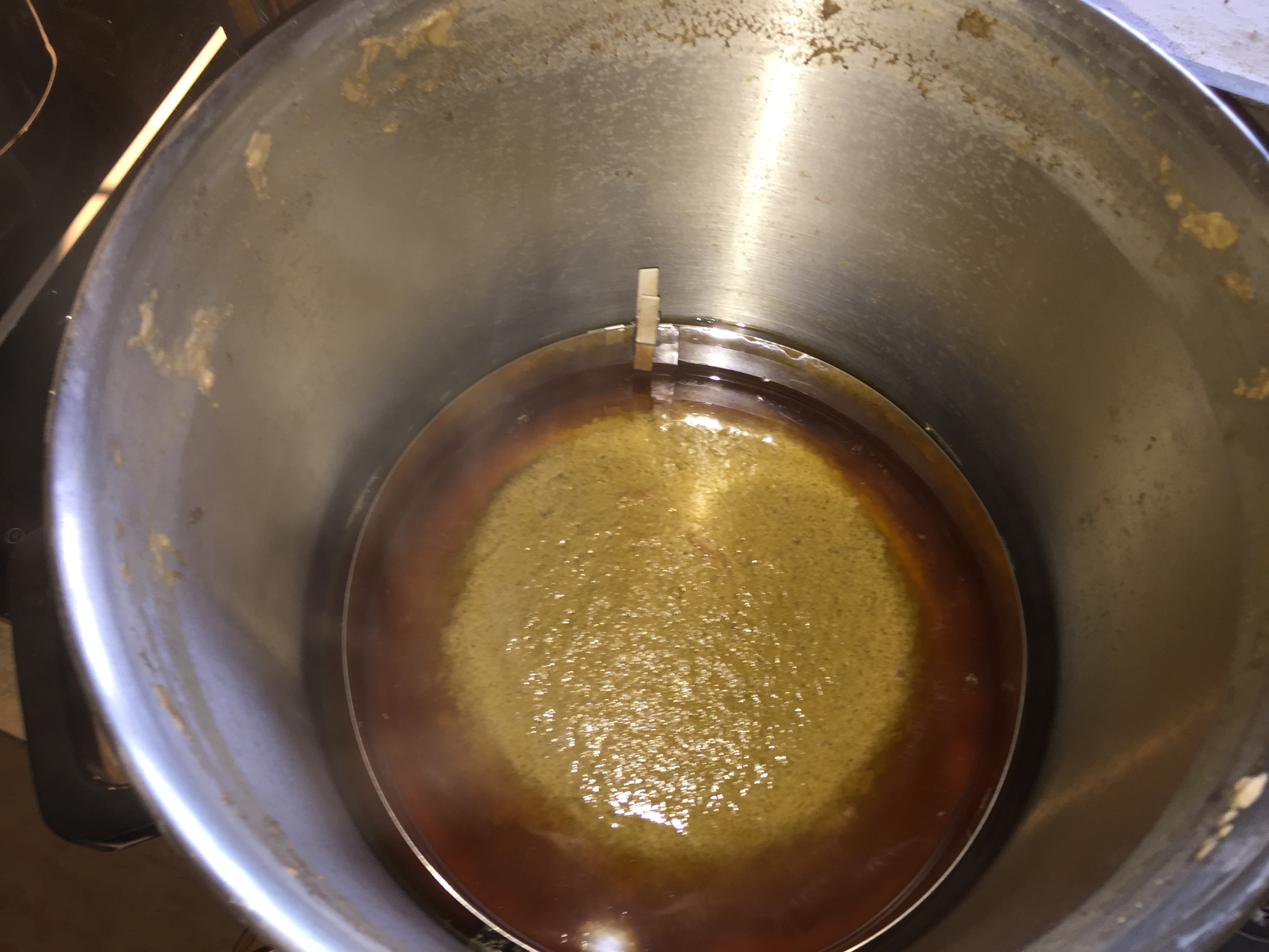 Will mir ja nicht die Finger verbrennen. Darum auch der Draht, damit kann ich den Ring versenken ohne in die heisse Würze zu fassen.