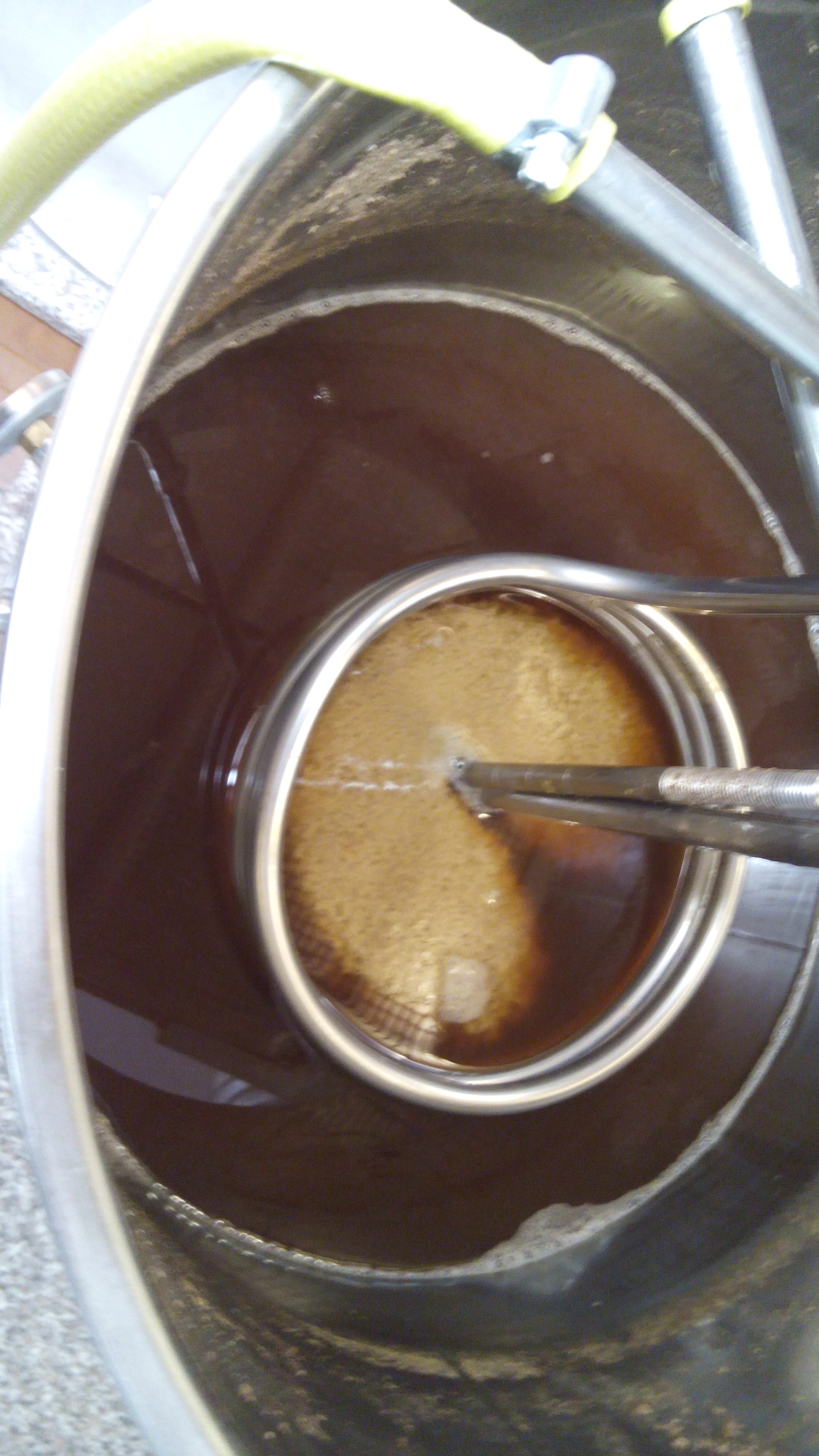 Will mir ja nicht die Finger verbrennen. Darum auch der Draht, damit kann ich den Ring versenken ohne in die heisse Würze zu fassen.