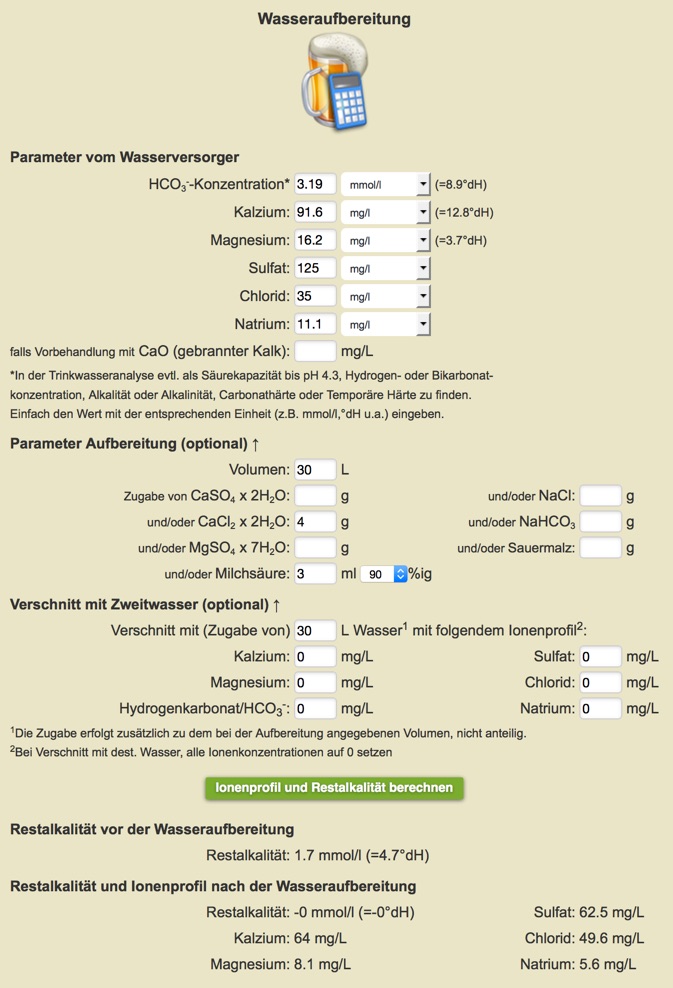 Meine Werte sind ähnlich: Hohe Gesamthärte bei gleichzeitug relativ hoher Magnesiumhärte und das im Artikel beschriebene Phänomen, dass gestopfte Biere kratzig "hinten raus" schmecken, nehme ich bei mir auch wahr. Deshalb würde ich die beschriebene Methode gerne auf meine Verhältnisse übertragen.