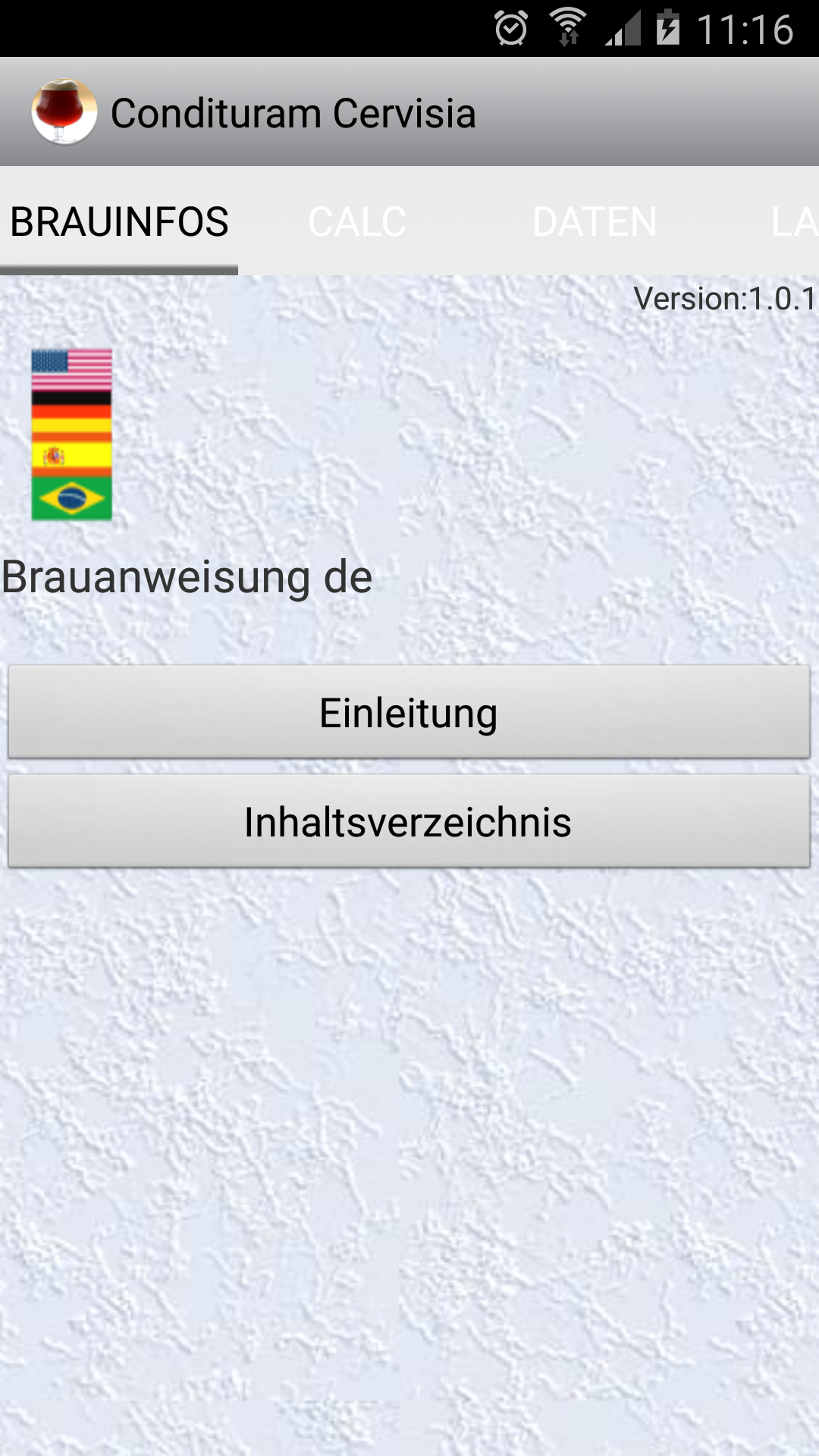 Nun also, das erste Modul ist veröffentlicht, beinhaltet die Navigation durch die späteren Module, Sprachumstellung (momentan nur deutsch) ein Vorwort zur Bierherstellung und die Navigation durch Brauanleitung/Brauinformationen. Ihr findet es im google Play Markt unter Condituram Cervisia oder unter meinem Nick ralfingo, bzw. hier ---> https://play.google.com/store/apps/deta ... m.cervisia