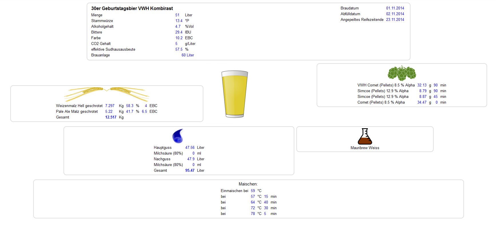 wir haben am Samstag unseren 11 Sud gebraut, hier mal die Daten: