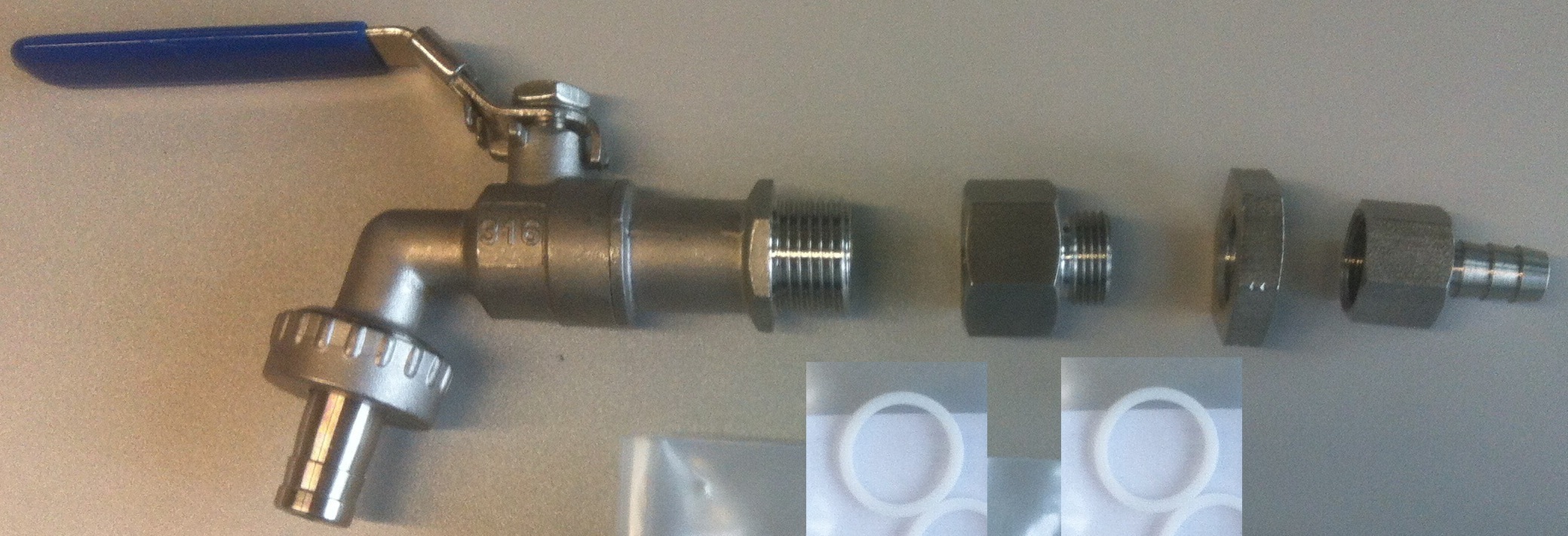 - Man kann die Tülle oder die Gegenmutter verwenden, aber nicht beides. An die Tülle schließen wir unseren Hopfenfilter an.
