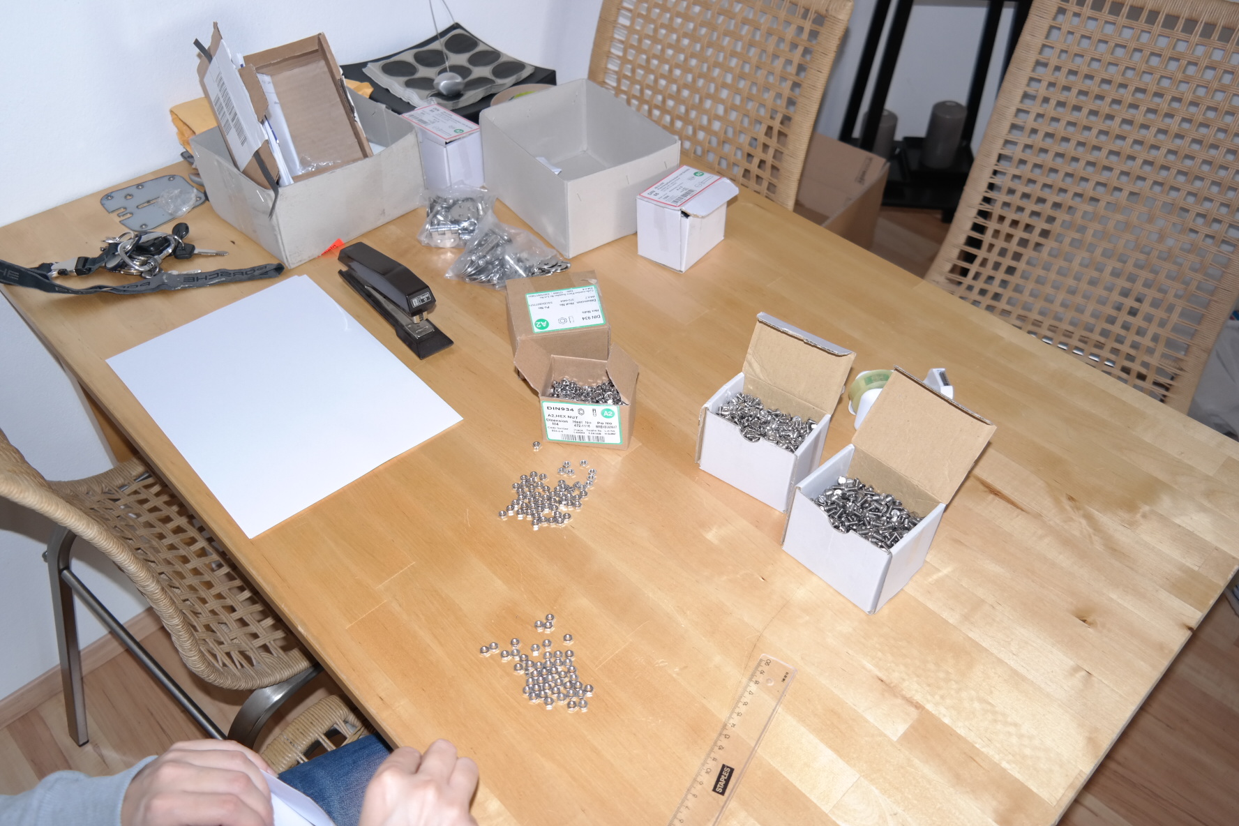 alle notwendigen Schrauben, Muttern und Beilagscheiben (alles in Edelstahl),