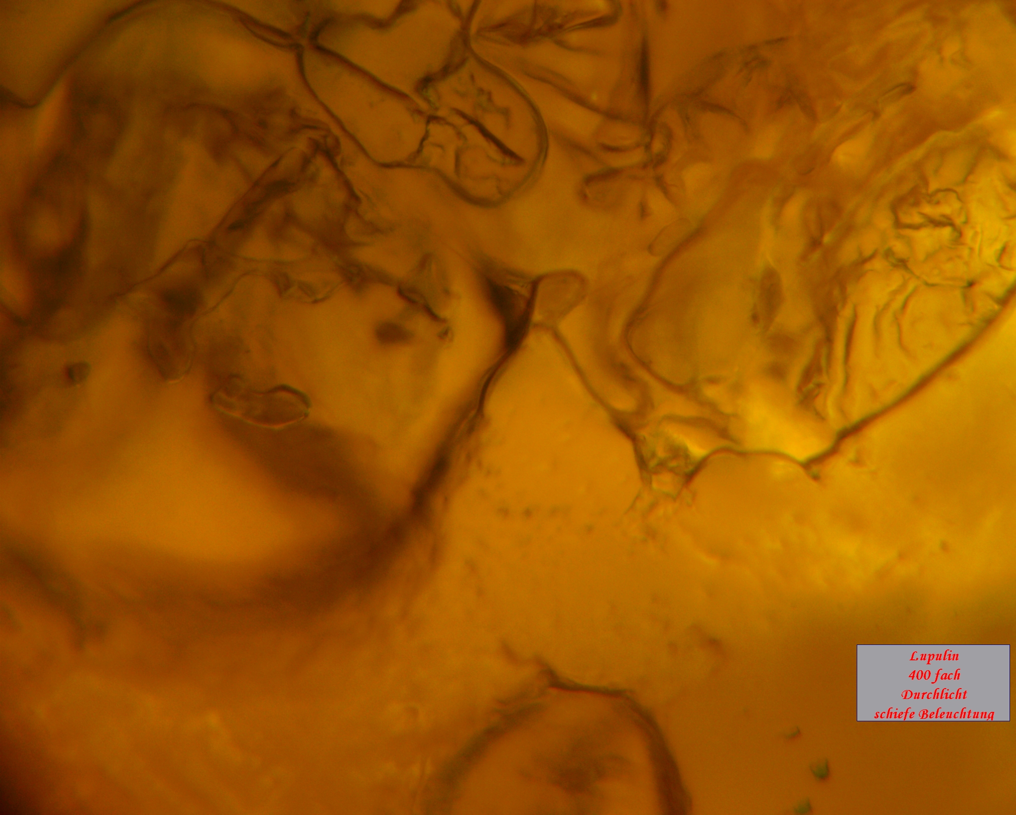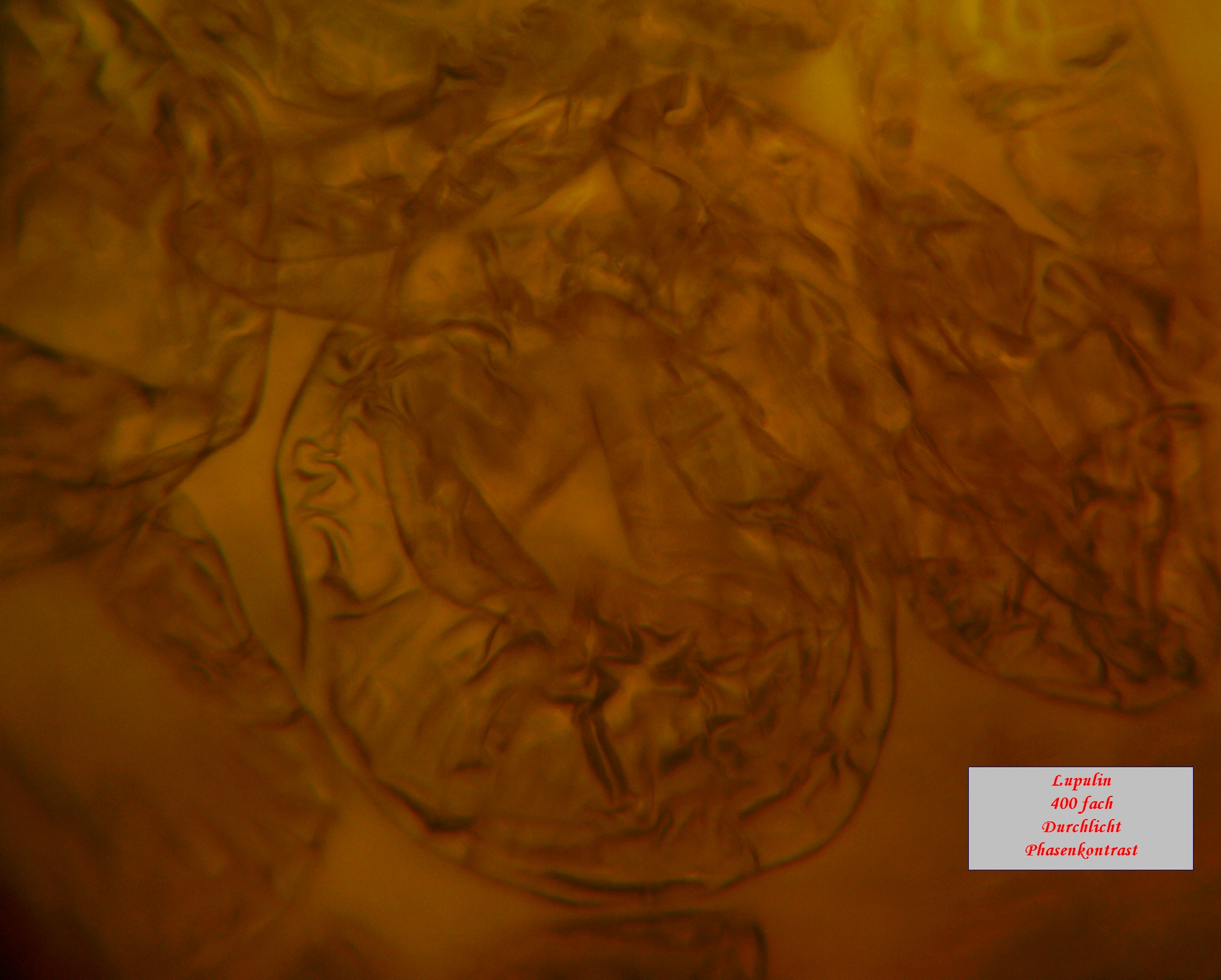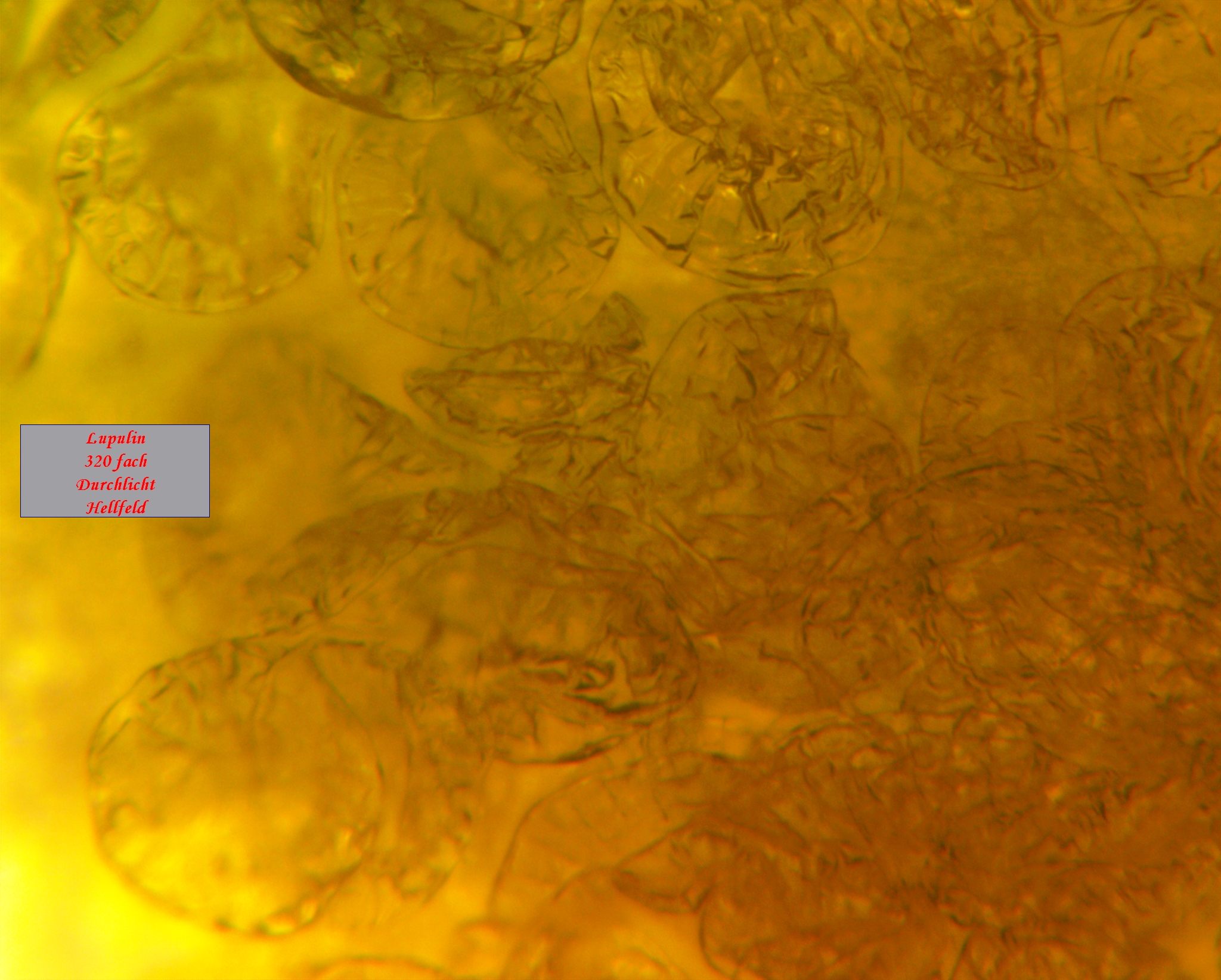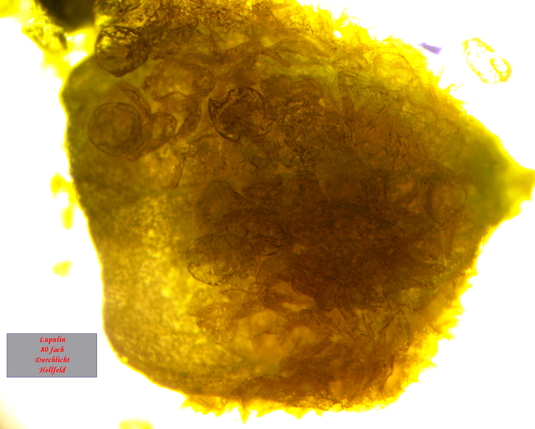 Zuhause hab ich die Dolden zerlegt und das darin enthaltene Lupulin unter das Mikroskop gelegt.