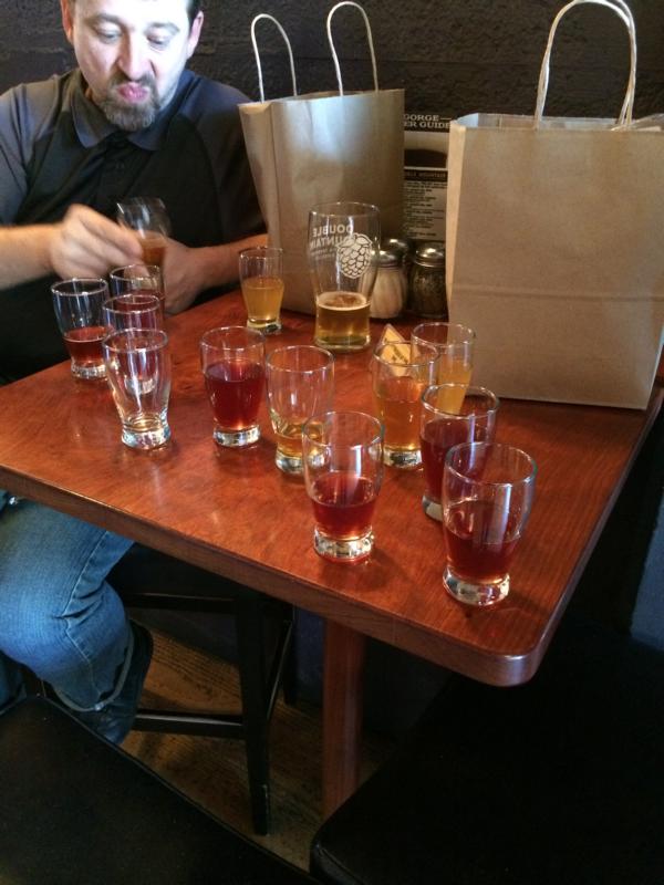 Am nächsten Tag machten wir uns auf den Weg nach Portland mit einem Zwischenhalt in Hood River bei der Full Sail Brewery, einer beeindruckenden Brauerei mit einer noch beeindruckenderen Sammlung an Pokalen und Auszeichnungen. Geläutert wird hier nicht, die Würzeabtrennung erfolgt über einen Maischefilter; im Prinzip eine Kammerfilterpresse. Die Brauzutaten sind etwas erweitert, die Spezialmalze kommen bekannt vor.