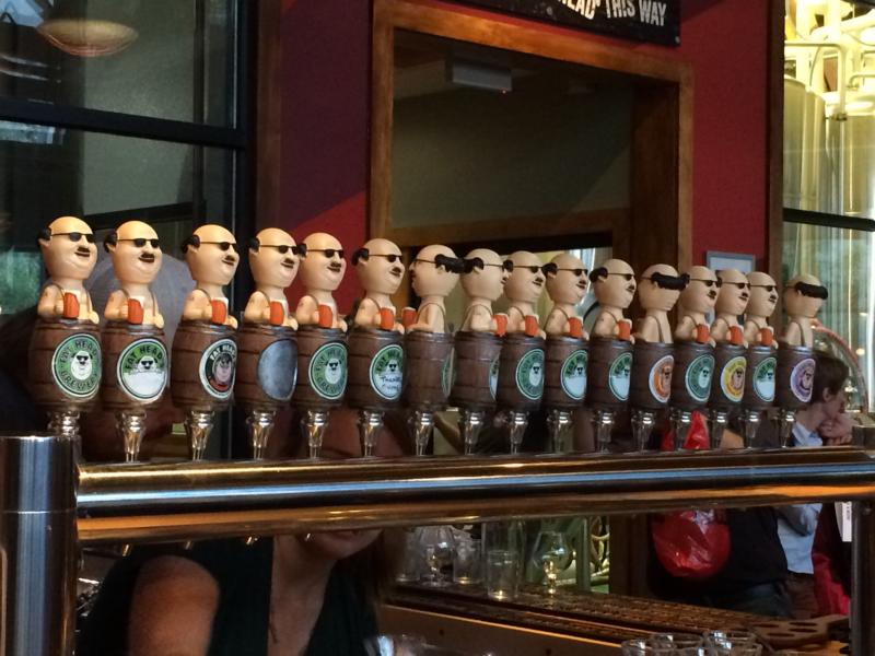 Am dritten Tag haben wir das Barth-Haas Information Center besucht wo wir Vorträge von Marc Rauschmann (Braufactum), Pete Mahony (Barth-Haas) und Matthew Brynildson (Headbrewer Firestone Walker) hören durften, die alle sehr interessant waren. Insbesondere die Entwicklung der Anbauflächen (Deutschland wird 2015 nicht mehr größtes Hopfenanbaugebiet sein, USA wird überholen), der Sortenverteilung (immer mehr Aromasorten) und die Entwicklung der Brewpubs und Kleinbrauereien. Insbesondere diese Gruppe wird immer größer und stellt daneben den größten Bedarf an Aromahopfen dar (10-facher Hopfenbedarf von „durchschnittlichem Craftbeer“ gegenüber „Normalbier“). Entgegen der hierzulande vorherrschenden Meinung ist die Craftbeerwelle in USA nicht am abebben; nach einem Tief in den 80er Jahren ist aktuell der größte Anstieg zu verzeichnen. Statistisch eröffnet in USA alle 16 Stunden ein Brewpub oder eine Microbrewery.