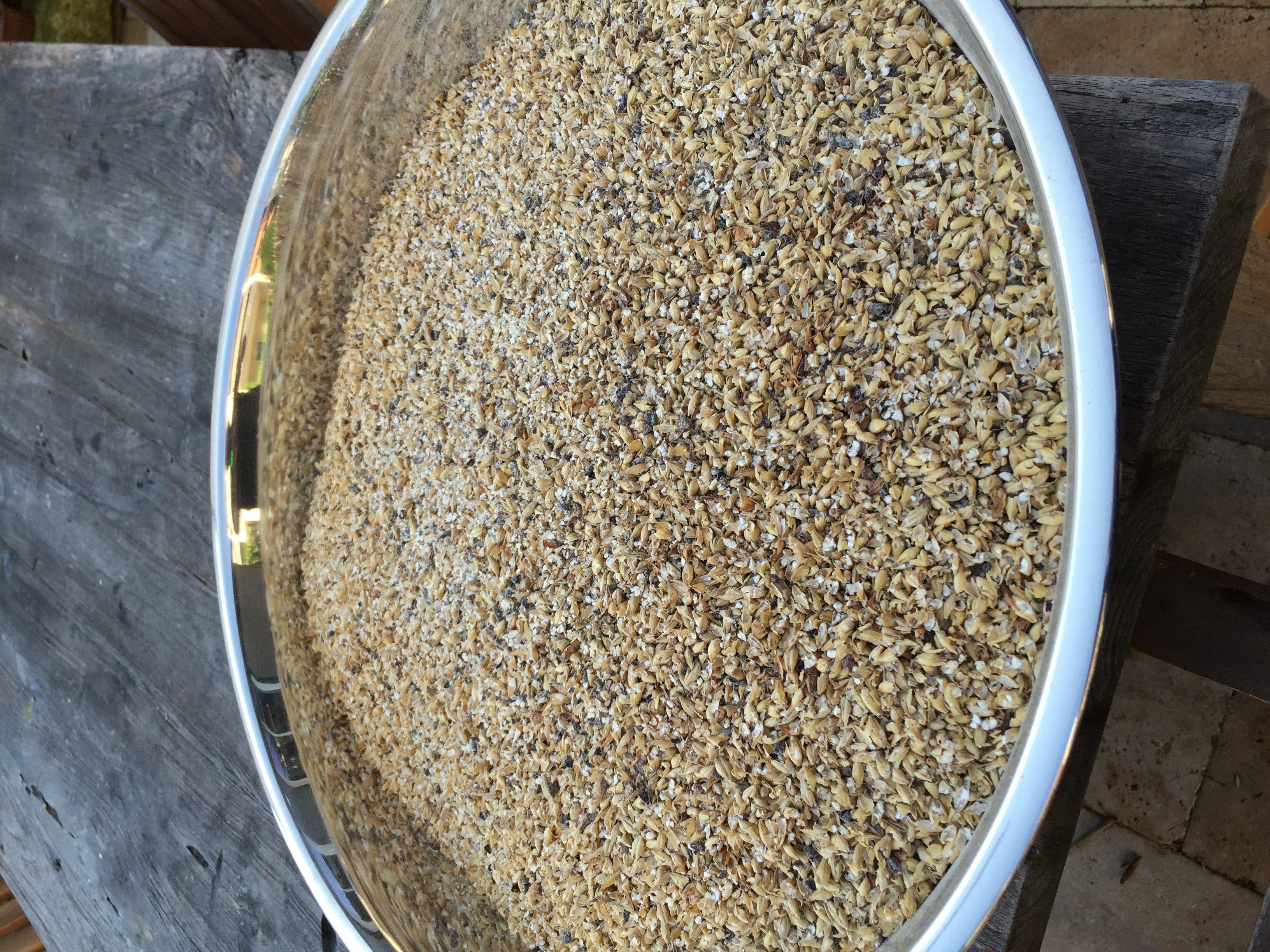 Dann wurde eingemaischt mit den noch heißen Haferflocken, die total lecker rochen. Meine ganze Wohnung roch danach und selbst nach 3 Stunden lüften riechst du das immer noch. Toll!