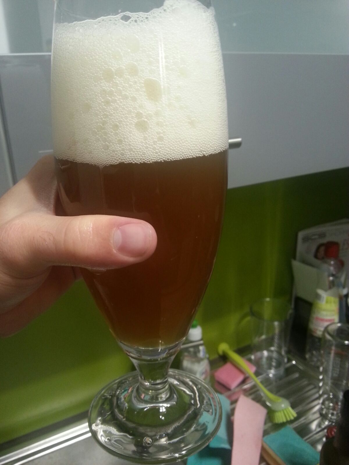 Nun war das Bier knapp 3 Wochen bei Kellertemperatur ca. 18-20 Grad in den Flaschen und bis heute (also noch 3 Wochen) im Kühlschrank.