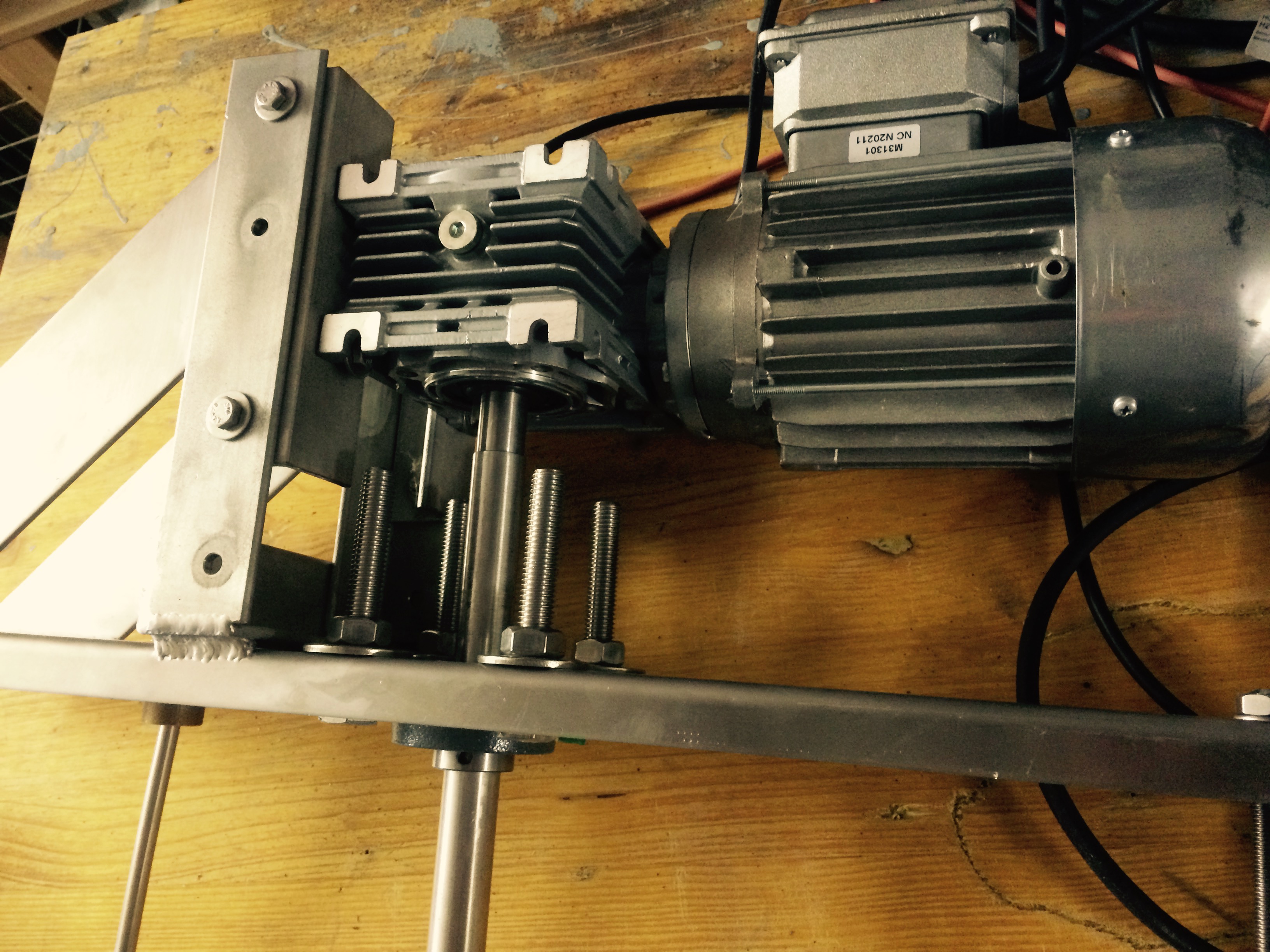 Angetrieben von einem Getriebemotor mit Frequenzumrichter.