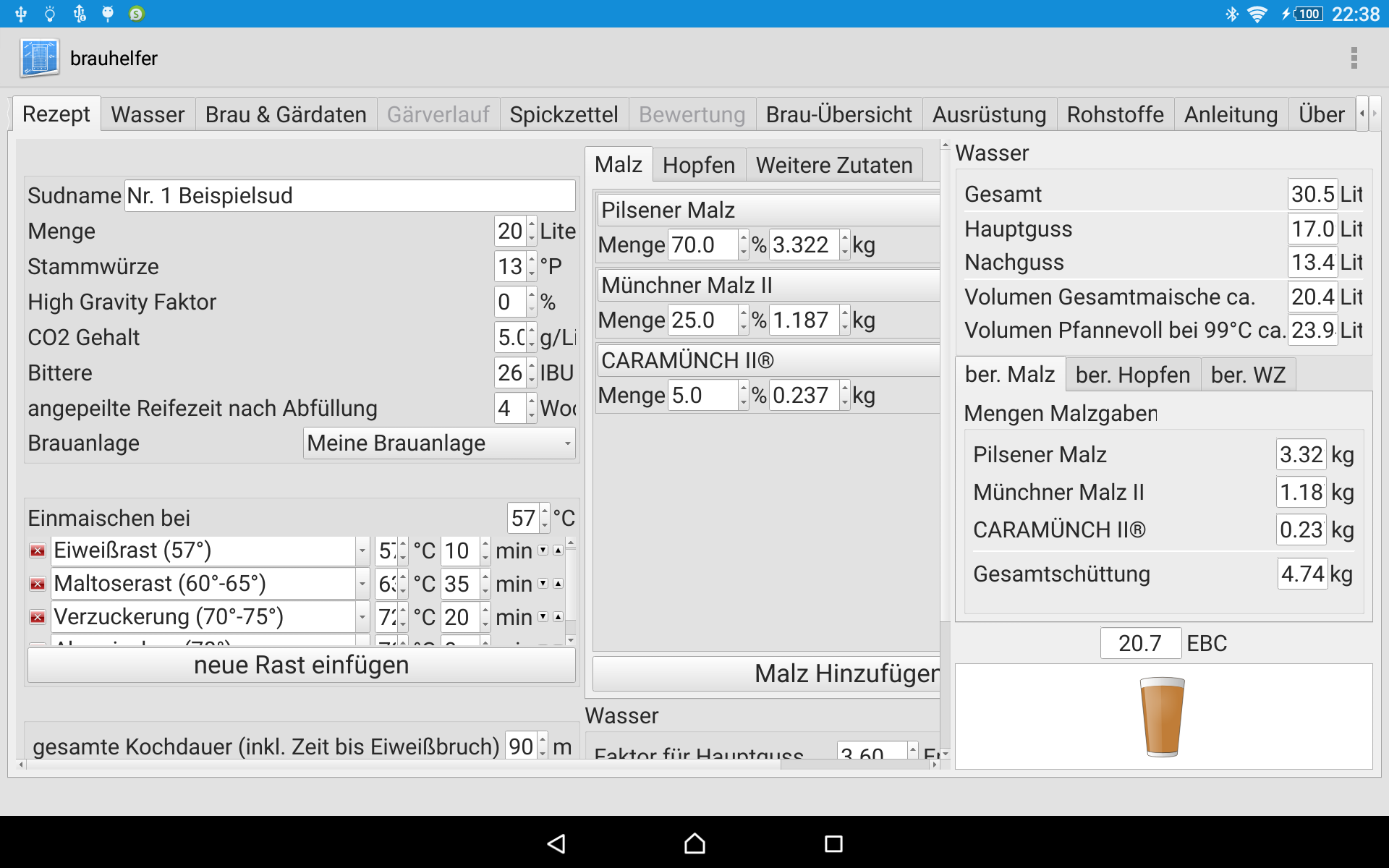 Am Anfang kann man Werte wie Sudhausausbeute usw. nur schätzen und diese dann den Erfahrungen nach anpassen.