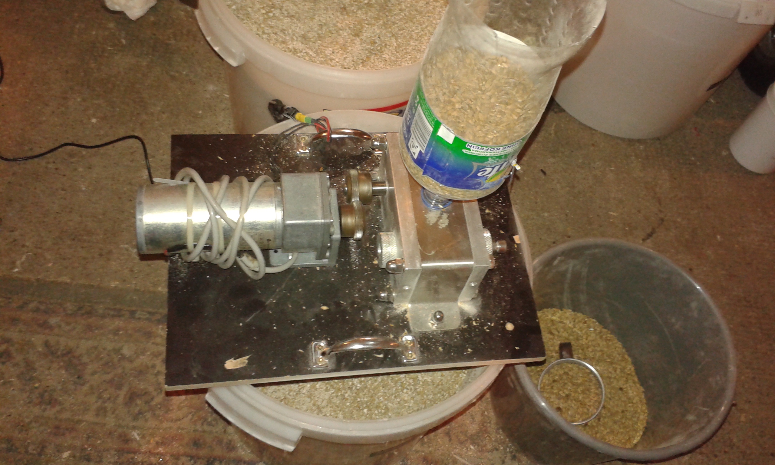 Ich hab meine Mühle auf einem Brett mit Nut. Das sitzt so stabil auf dem alten Einkochtopf. Angetrieben wird bei mir mit einer Bohrmaschiene auf niedriger Geschwindigkeit.