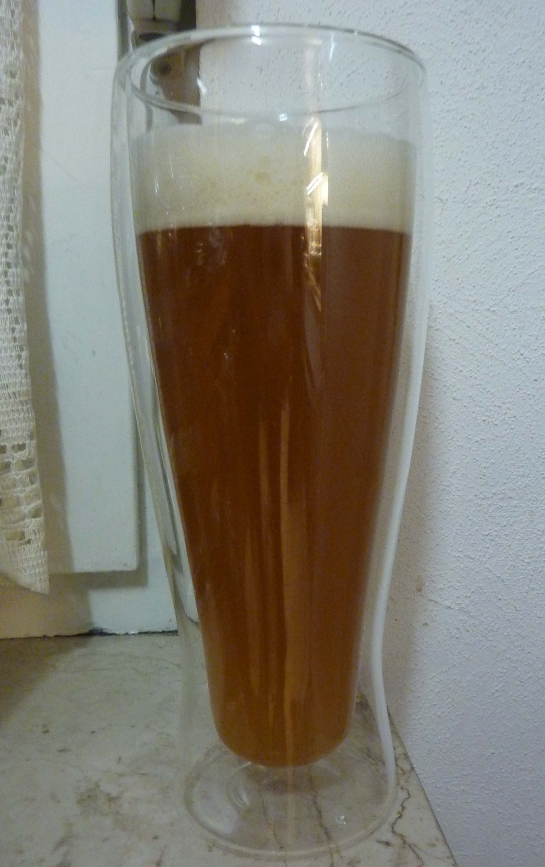 Durch die Hopfengaben hat sie aber noch etwas Farbe (grün-gelblich) bekomme.