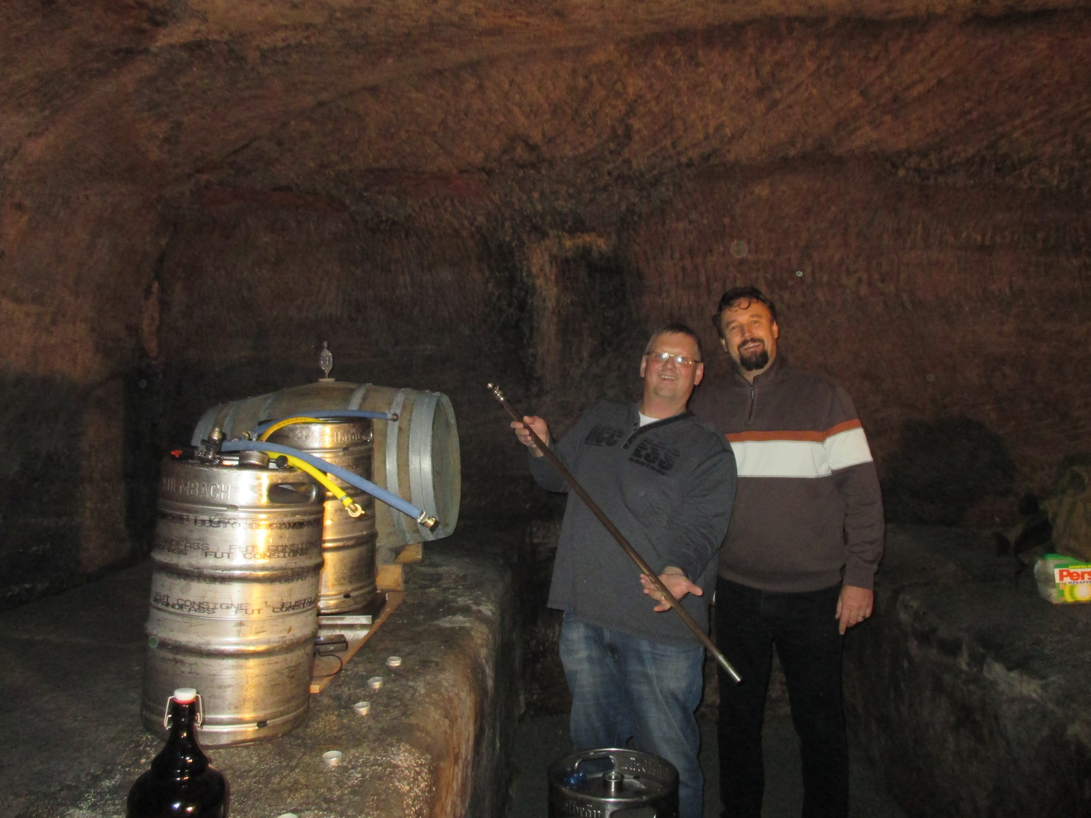 anlässlich meines Besuchs der HHBT in Kumbach am letzten WE, haben sich Holger und Hiasl dankenswerter Weise bereit erklärt, für einige HBF-Mitglieder eine Führung in die Katakomben des Grauens nebst Verkostung des Barrique-Bocks zu veranstalten.Ferner waren Al und Marsabba dabei. Solod war leider verhindert.