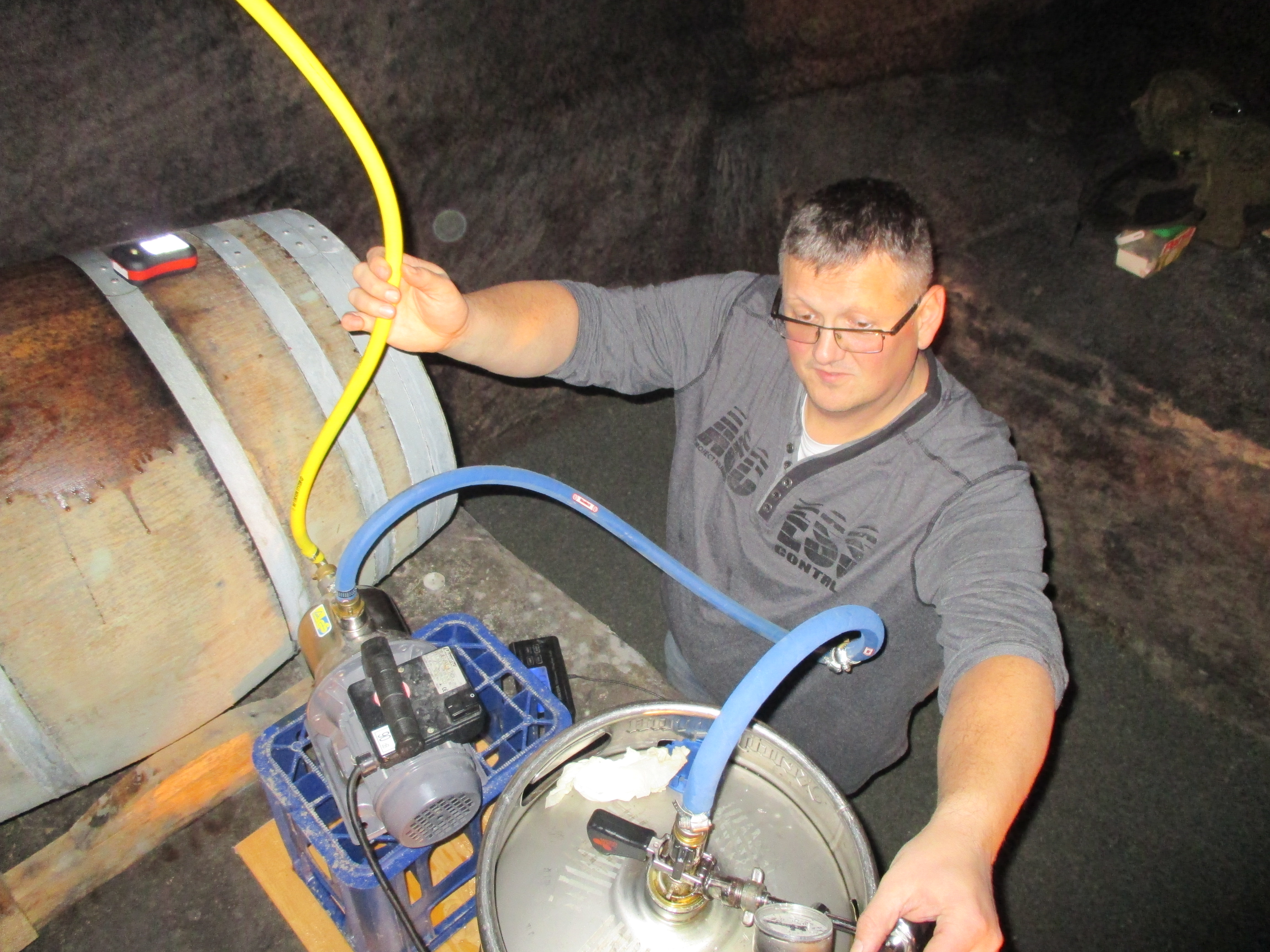 Nach über 100 Tagen in den Tiefen des Kulmbacher Burgkerkers haben wir es gewagt, unser Barriqueböckchen ein neues Zuhause zu geben und es in gemeine Edelstahlfässer einzusperren.
