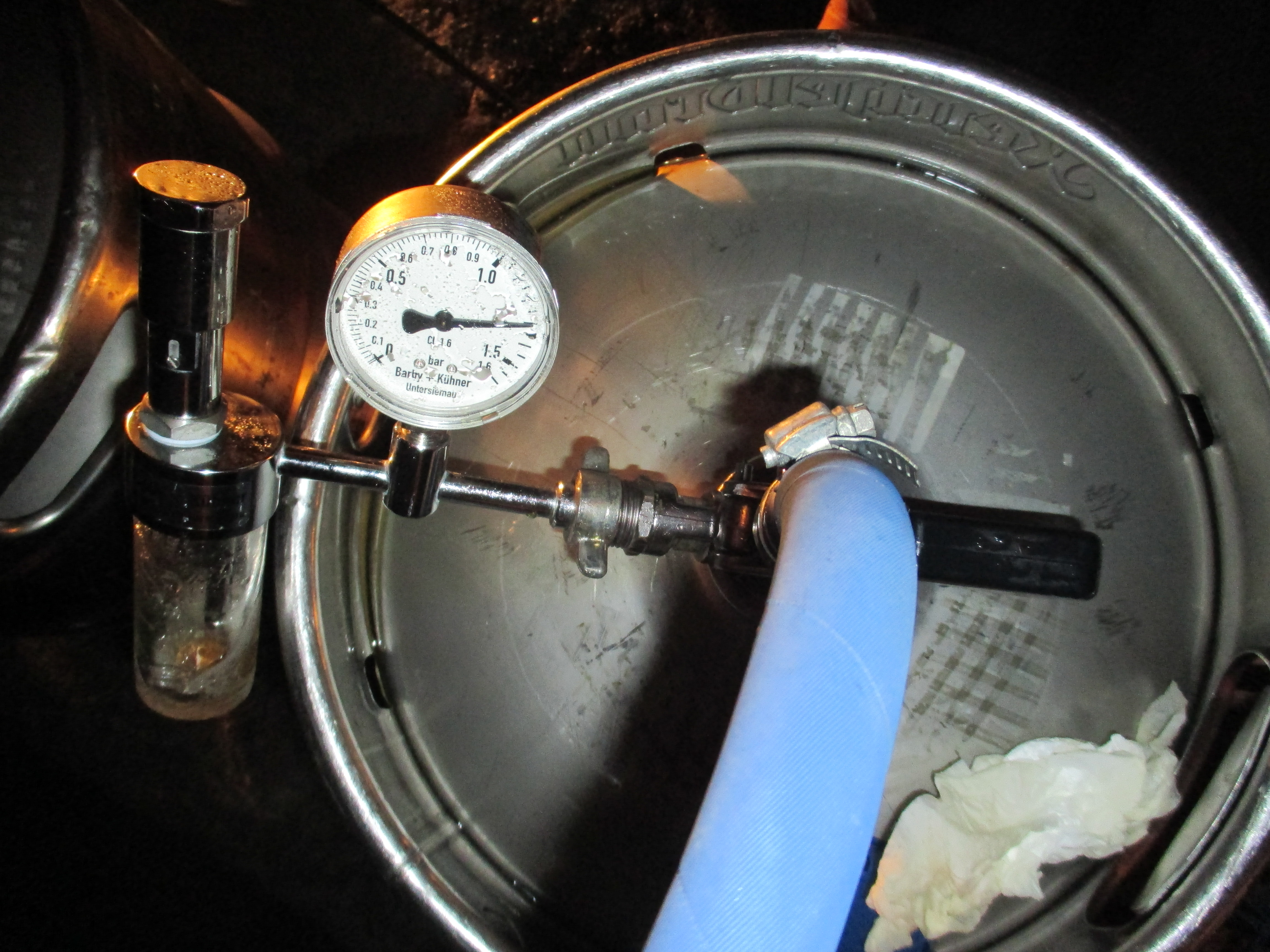 Sooo, der nächste Schritt wird das Zwangskarbonisieren sein. Mal schaun, wieviel Druck das Fass aushält...