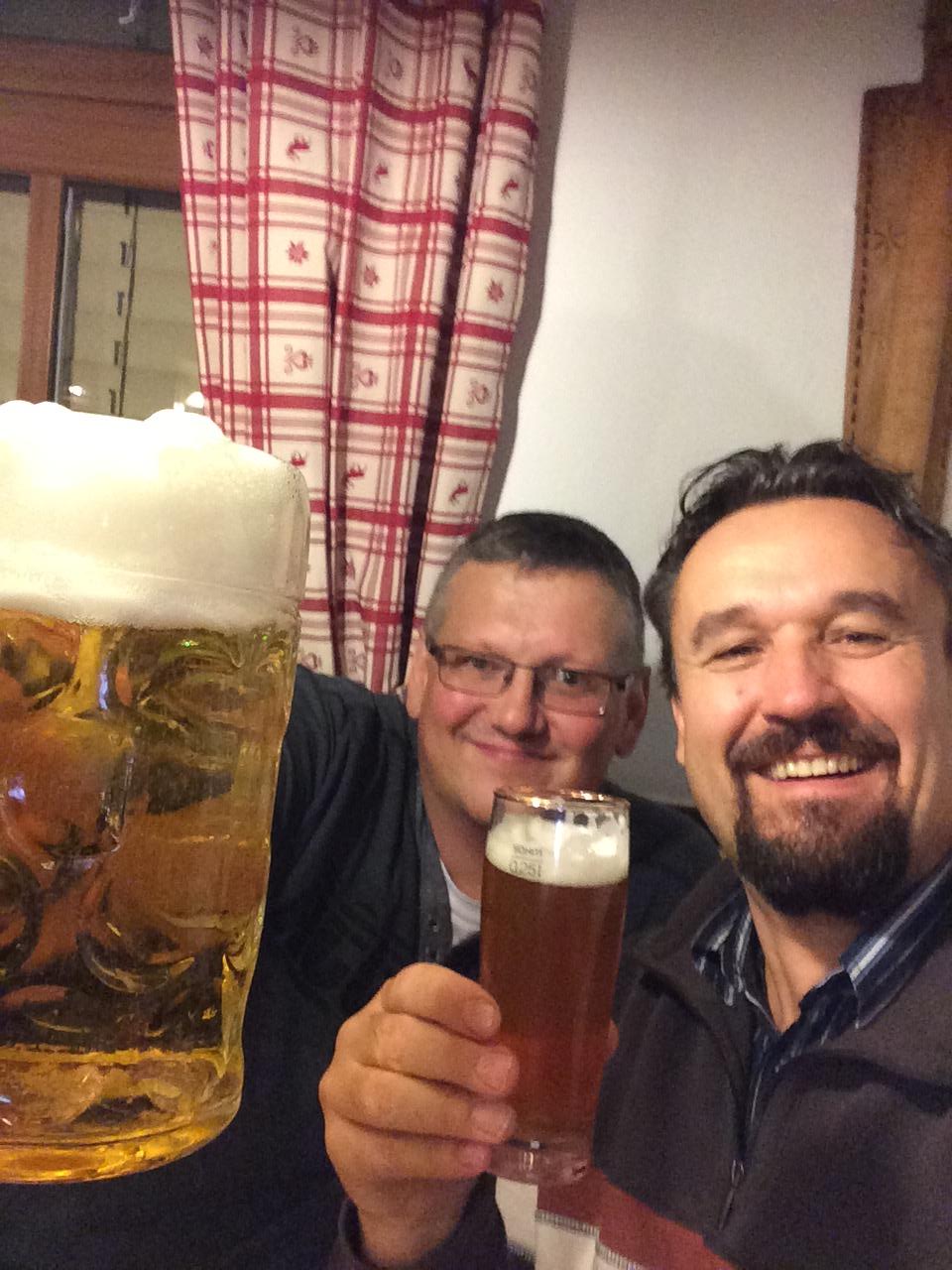 Dann gings ab zu Holger. Die ganzen fetten Fässer alle in den Keller wuchten..jetzt hatten wir uns wirklich eine kühle Blonde verdient..Dazu gabs noch eine knusprige Haxe aus einer guten fränkischen Küche!