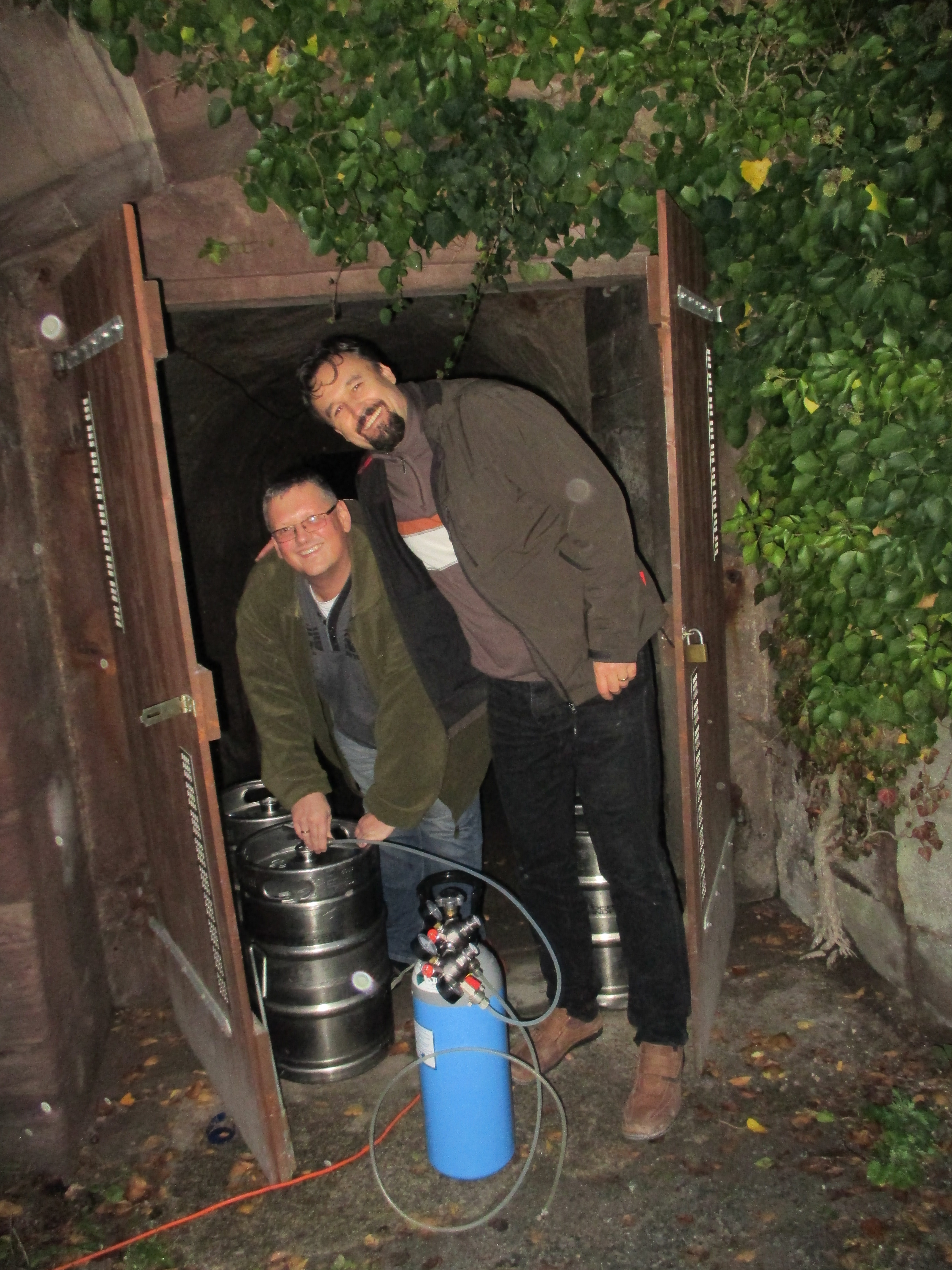Dann gings ab zu Holger. Die ganzen fetten Fässer alle in den Keller wuchten..jetzt hatten wir uns wirklich eine kühle Blonde verdient..Dazu gabs noch eine knusprige Haxe aus einer guten fränkischen Küche!