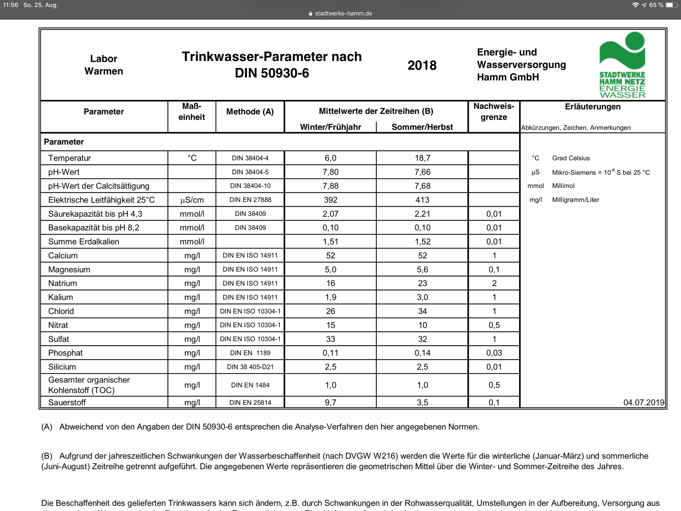 So sorry für die fehlenden Wasserwerte hier sind sie Ich befinde mich im übrigen in Zone 3 http://www.stadtwerke-detmold.de/cms/Pr ... e-2013.pdf Leider ist zur Zeit keiner bei den Stadtwerken erreichbar sobald ich jemanden erreiche reiche ich die restalkalität und carbonathärte nach