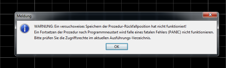 Beim Start eines Maischeprogramm bekomme ich schon die Meldung dass das Speichern der Prozedur Rückfallpositon nicht funktioniert.
