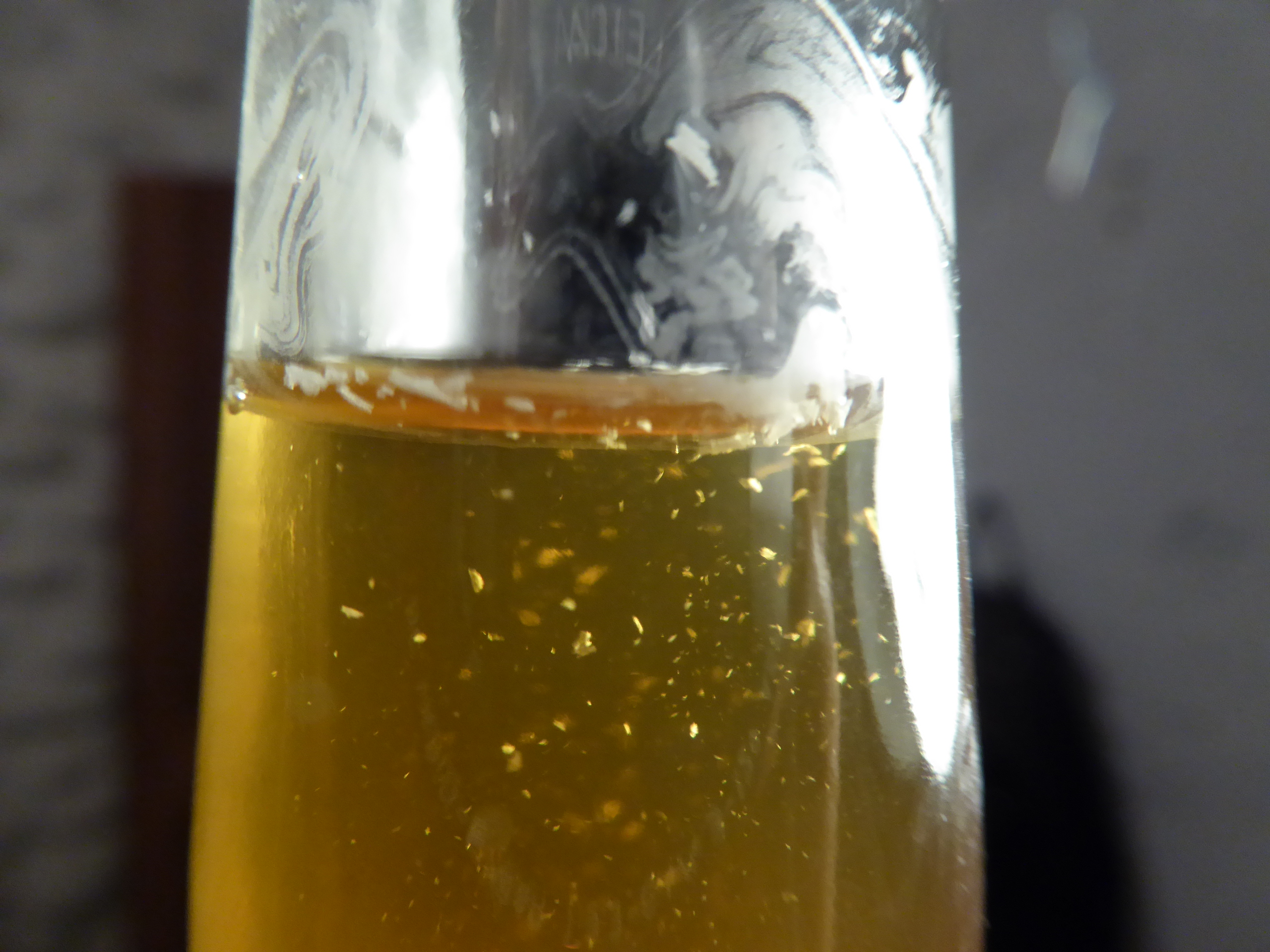 1. Kleinste Partikel befinden sich an der Oberfläche des Biers herum. Bei leichtem Schütteln der Flasche "fliegen" sie herum und man kann sie deutlich sehen. Sehen ein bisschen aus wie kleine Fäden.
