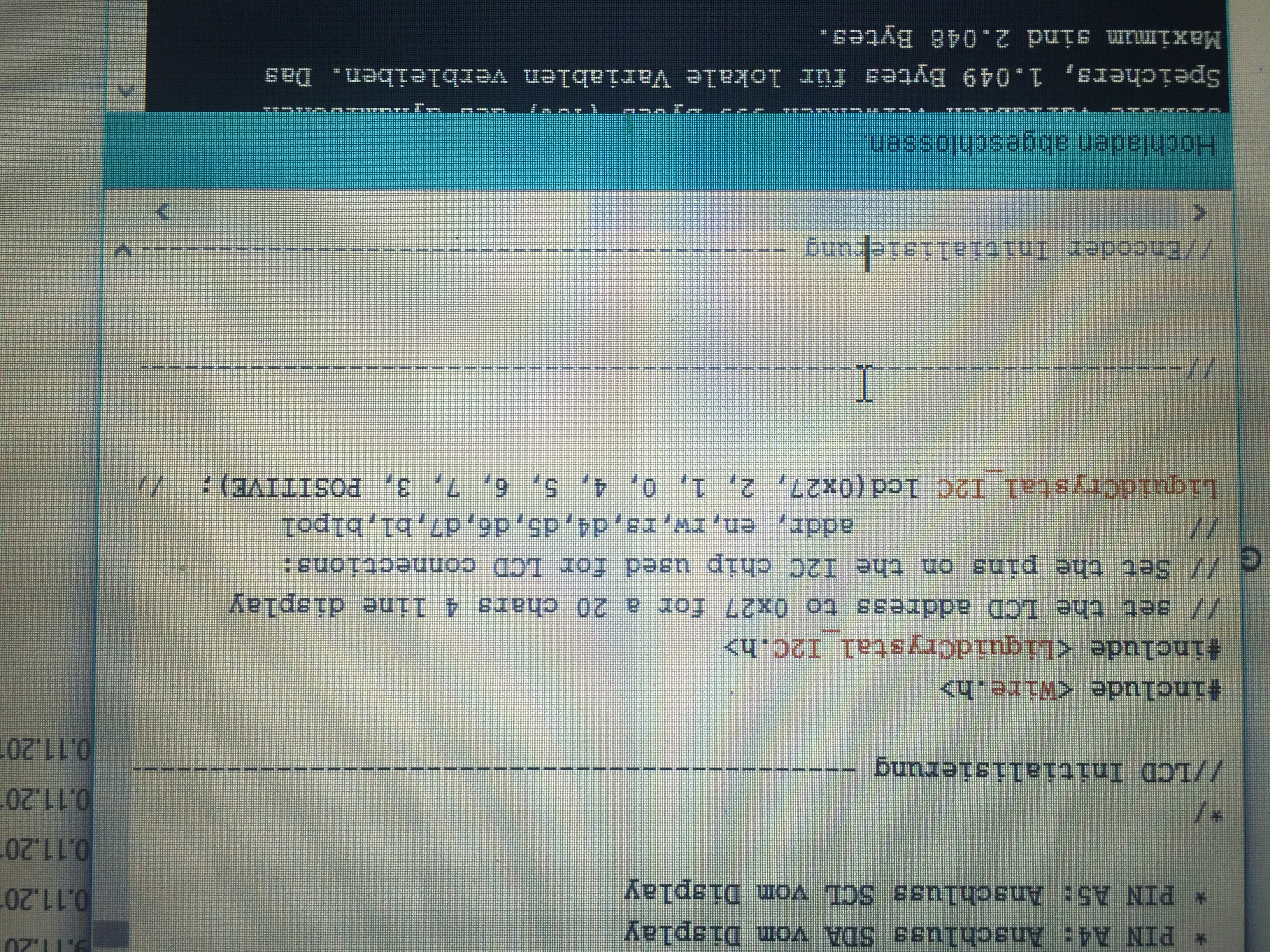Bei mir war das Problem das ich den Code nicht richtig hochgeladen habe, ich dachte mit dem Häckchen wäre es hochgeladen man muss aber auch noch den Pfeil drücken. Wenn dann die Fehlermeldung "avrdude: stk500_getsync(): not in sync: resp=0x00" kommt habt ihr entweder den falschen Adruino unter Tools ->Board ausgewählt oder den falschen Seriellen Port Tools -> Serieller Port. :Mad2 :redhead :Mad2