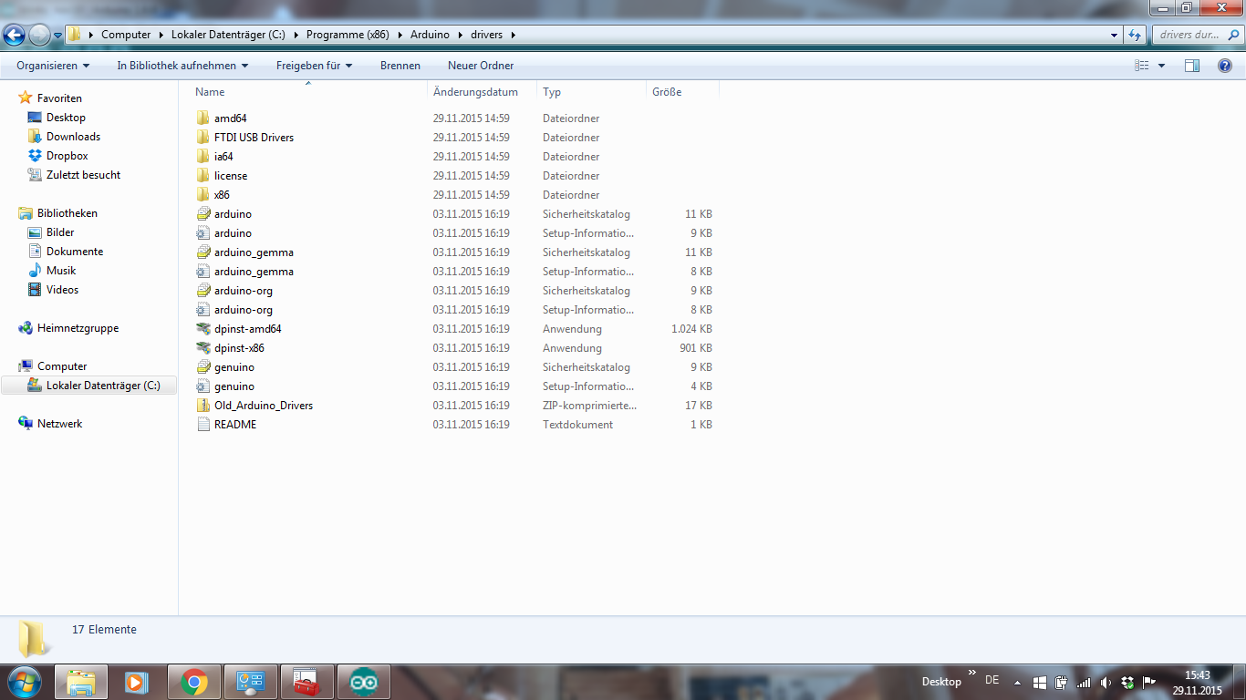 Habe sowohl lokal als auch Internet probiert, findet Treiber nicht. Habe die Software von der Arduino-Seite.