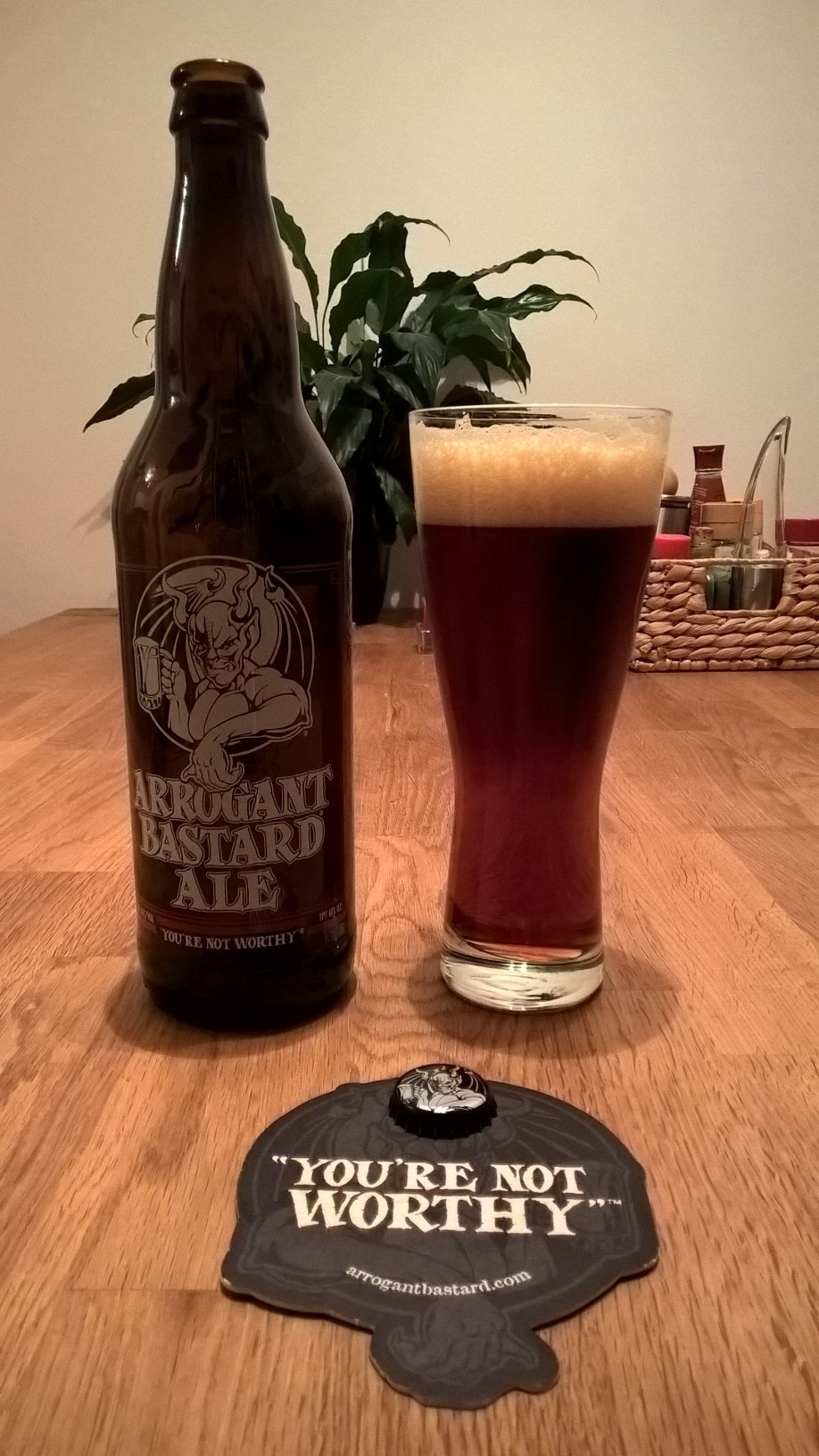 Mein Oaked Arrogant Bastard clone, über 1 Jahr in der Flasche. Kristallklar und lecker wie am ersten Tag.