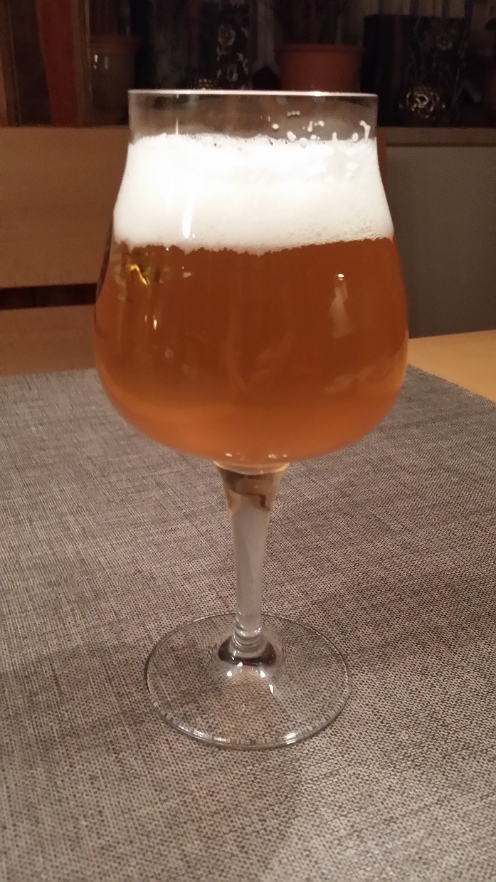 Und ich probiere gerade einen Jährling, na fast, er ist übermorgen vor einem Jahr in die Flasche gekommen. Es ist ein UG-Maibock mit Celeia im WP und gestopft.
