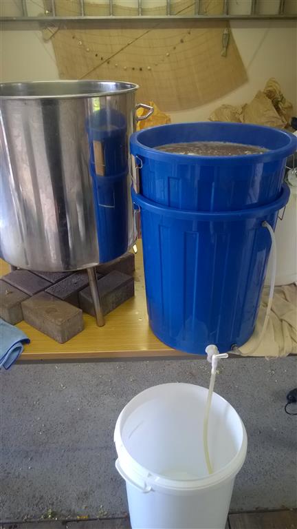 Links die Pfanne mit umgebautem Rührwerk und rechts der Läuterbottich mit der Hexe. Bin echt begeistert von der Hexe :thumbup :thumbup :thumbup