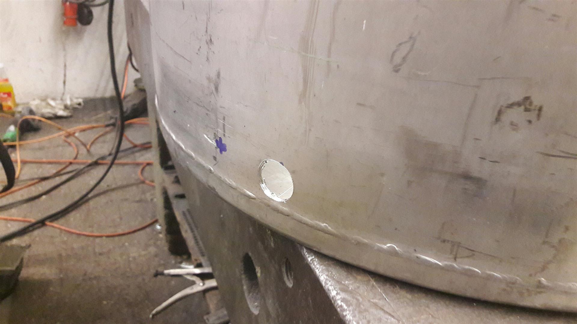Hier habe ich dann die Löcher 1x für die Läuterhexe und 1x für den 2-Zoll-Kugelhahn gesetzt.