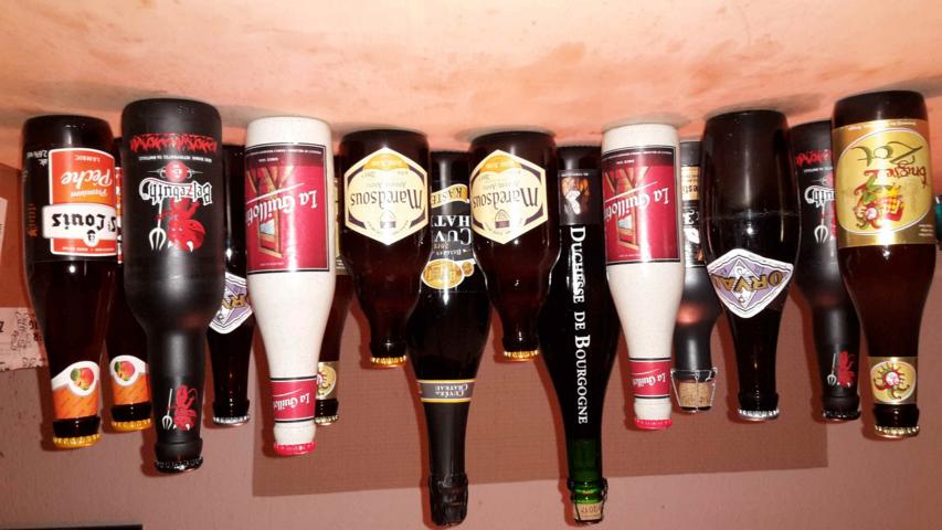 Warum die an der Decke hängen weiß ich auch nicht, einfach draufklicken. Im Faß ist selbstgebrautes Dubbel. Schon mal Prost. :Drink