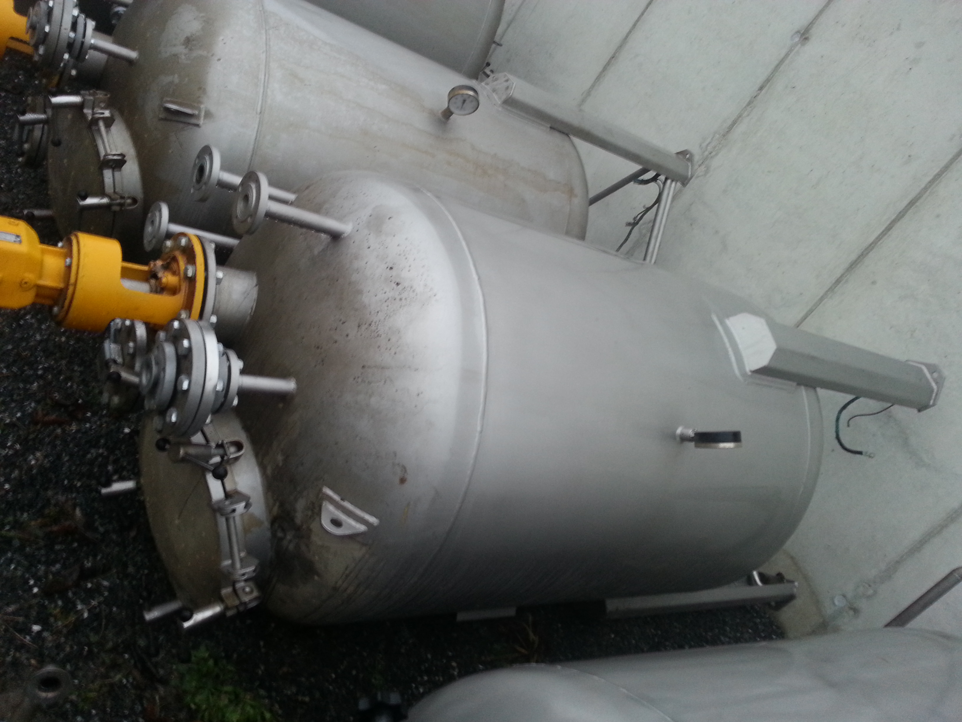 Einer davon mit Getriebeuntersetztem Industriemotor und Edelstahlrührwerk. Alle drei bis 4 bar druckfest!!! Außerdem noch zwei baugleiche, ebenfalls druckfeste Tanks mit 500 Liter Fassungsvermögen.