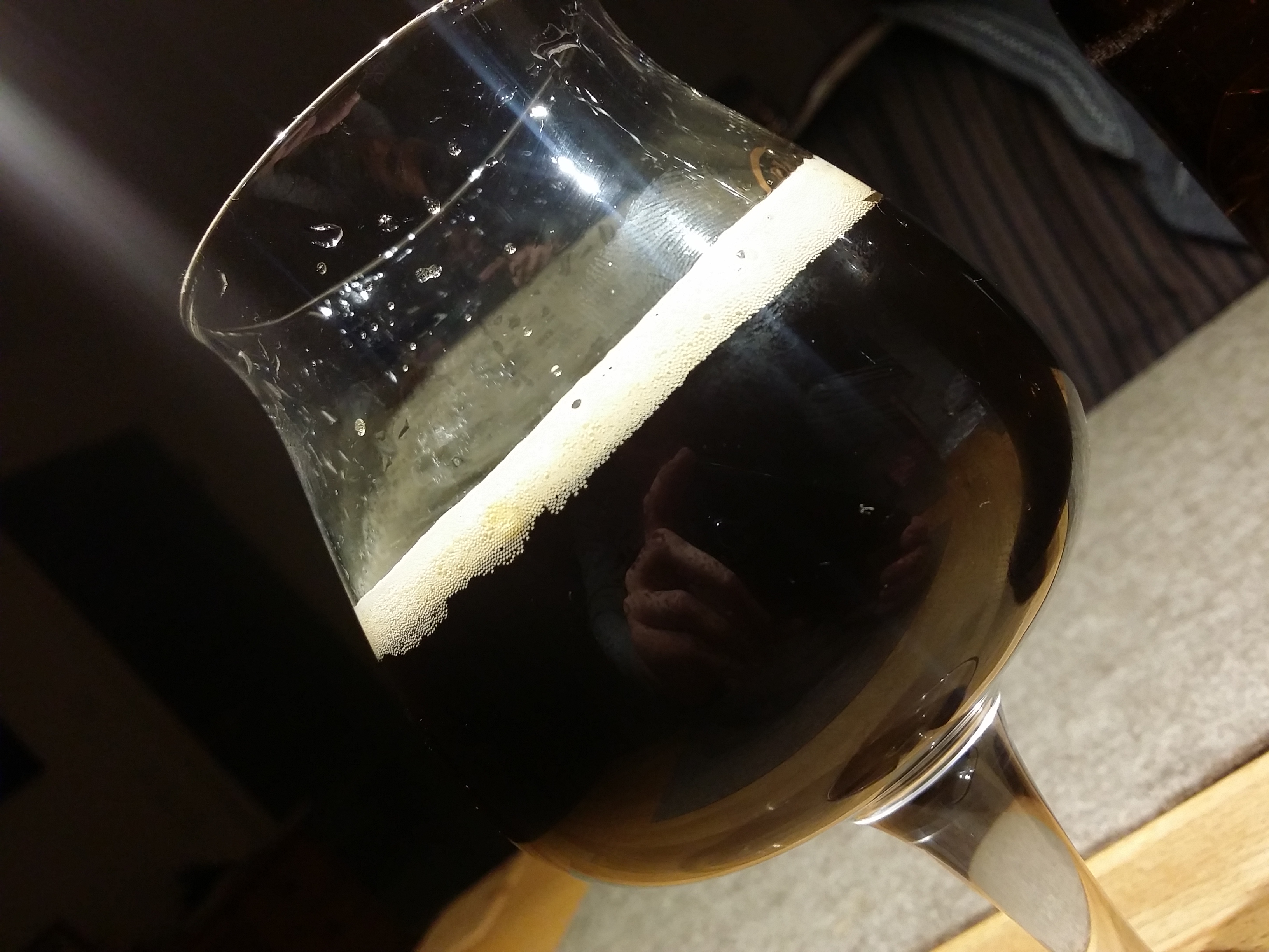 Es schmeckt immer noch sehr lecker und gewinnt an Komplexität, obwohl das umwerfende Hopfenaroma natürlich nicht mit dem Aroma zu Beginn vergleichbar ist. Die Kaffee-, und ich meine zunehmend auch Lakritztöne, sind ein Genuss!