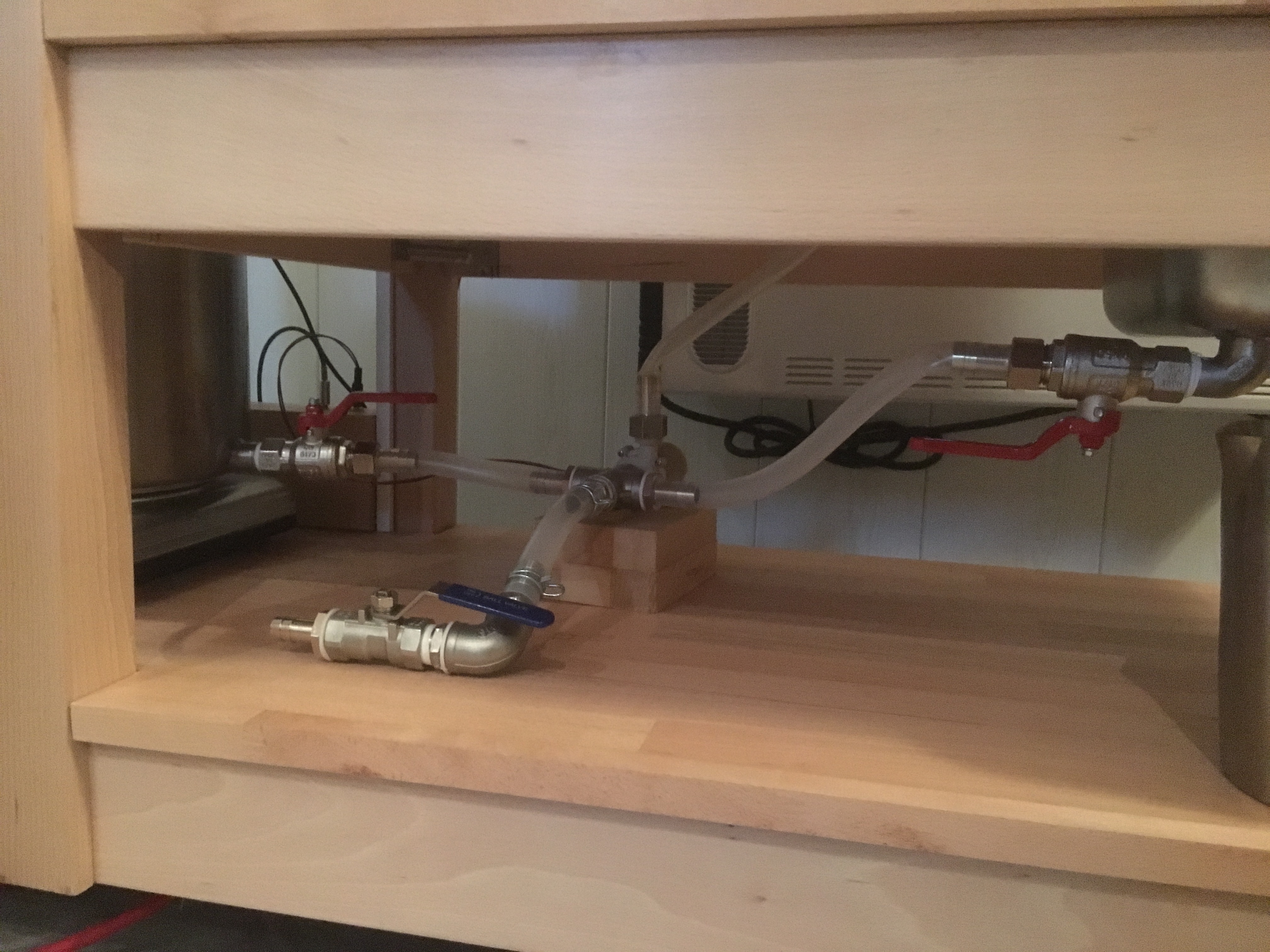 erstmal mein Kompliment für die Anlage. Das sieht alles nach hervorragender Verarbeitung aus. Hast du bei dem Einbauort für die Elektronik bedacht, dass mal etwas daneben gehen/überkochen könnte? Kann das dann irgendwo hinein laufen?