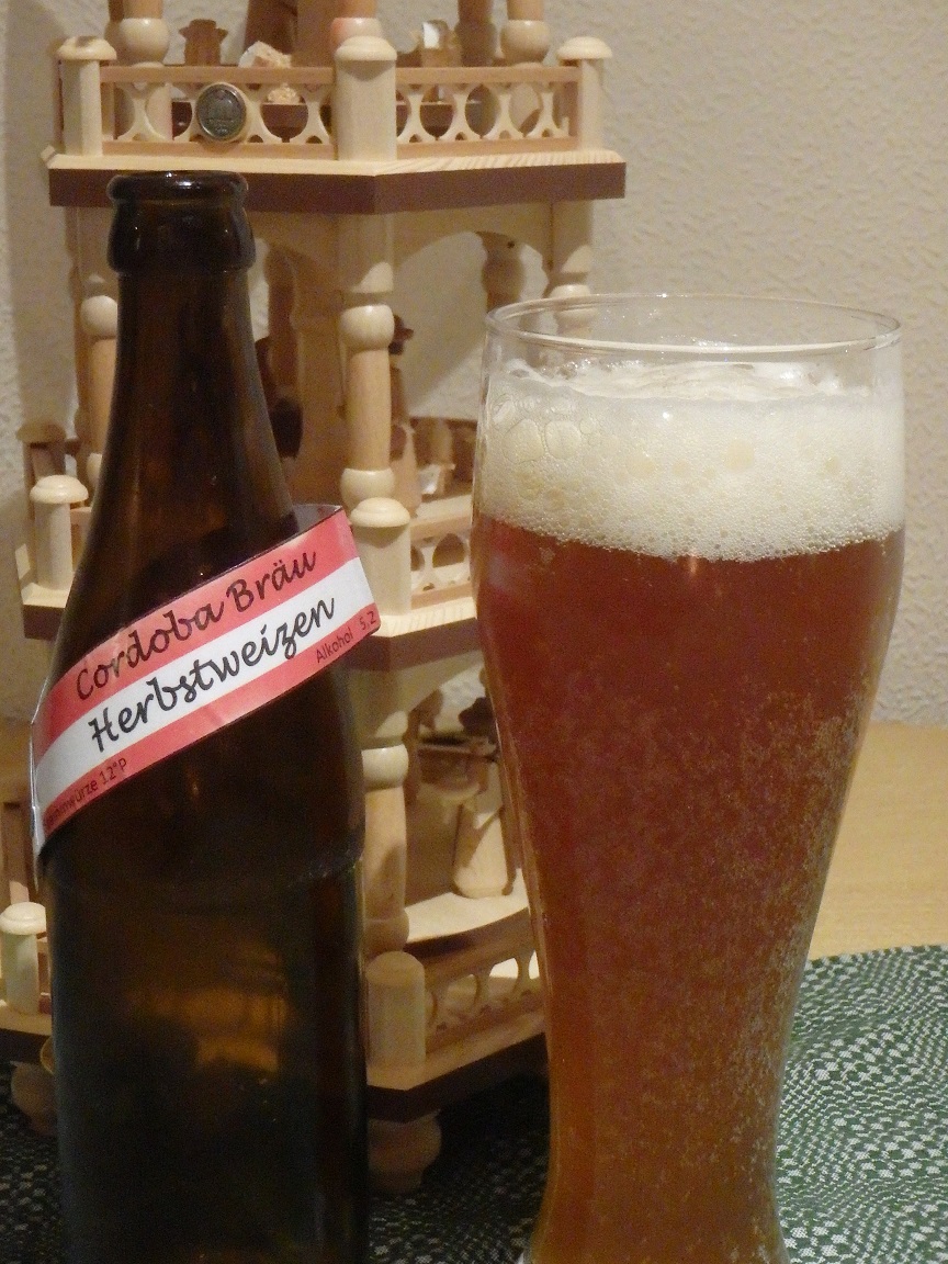 Als erstes habe ich das Dinkale getrunken. Dem Namen nach würde ich vermuten, dass es sich um ein Ale mit Dinkel handelt (man nennt mich auch Sherlock:)). Farbe und Schaum waren sehr schön. Zum Geruch habe ich mir leider keine Notizen gemacht, ich habe aber eine sehr dezente Hopfennote in Erinnerung. Insgesamt war es sehr lecker und süffig, die Karbonisierung hätte für meinen Geschmack einen Tick stärker ausfallen können. Wenn ich mich mal aus dem Fenster lehne, würde ich neben dem Dinkel von der Farbe auf etwas MüMa und beim Hopfen eher auf deutsche Vetreter tippen (vielleicht Spalter?).