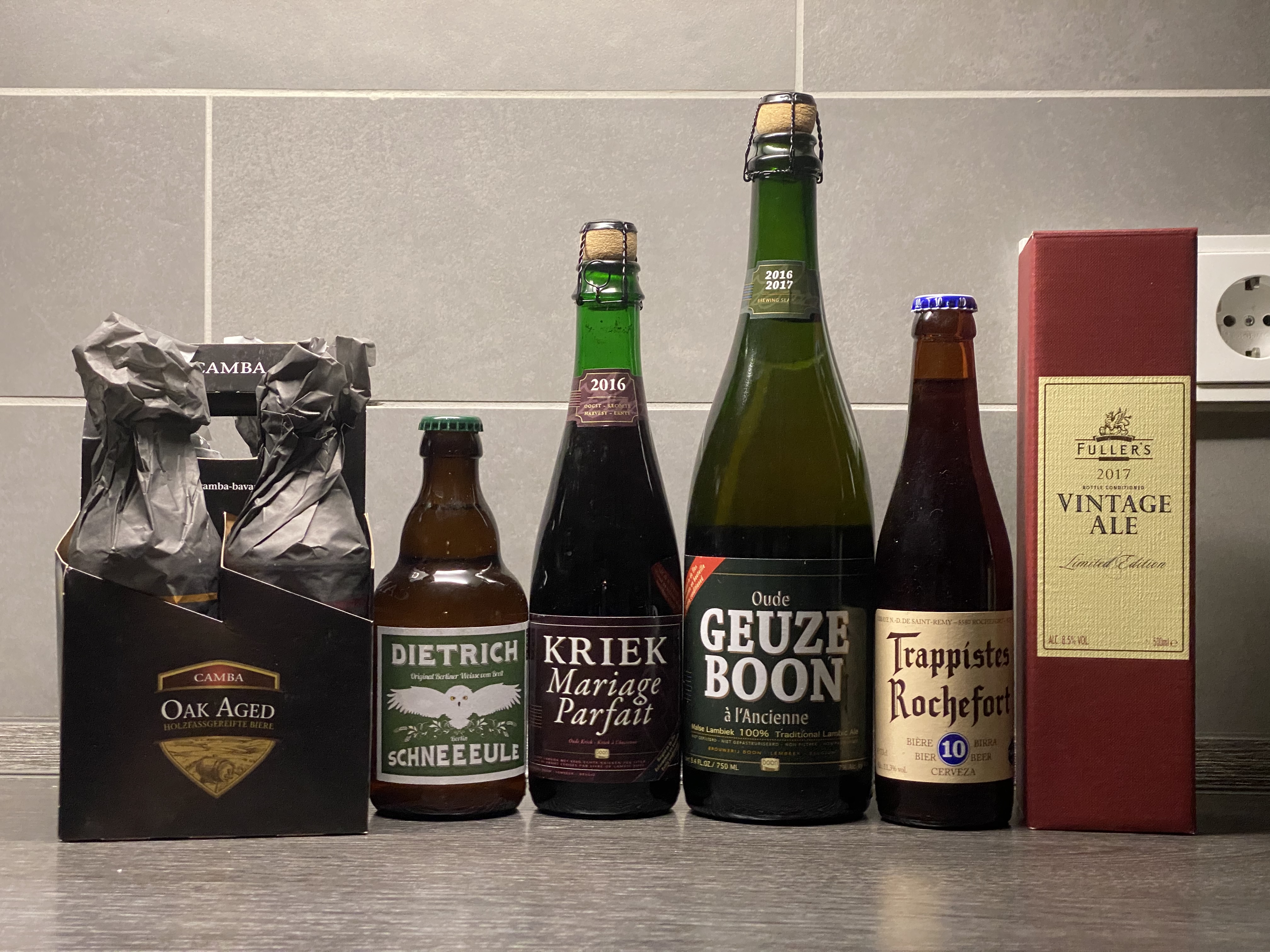 Wir waren am Bodensee. Da kann ich immer nicht bei KommproBier in Langenargen vorbeifahren. Es gab vier verschiedene Camba Oak Aged, ein Fullers Vintage, eine Schneeeule und ein paar Belgier.