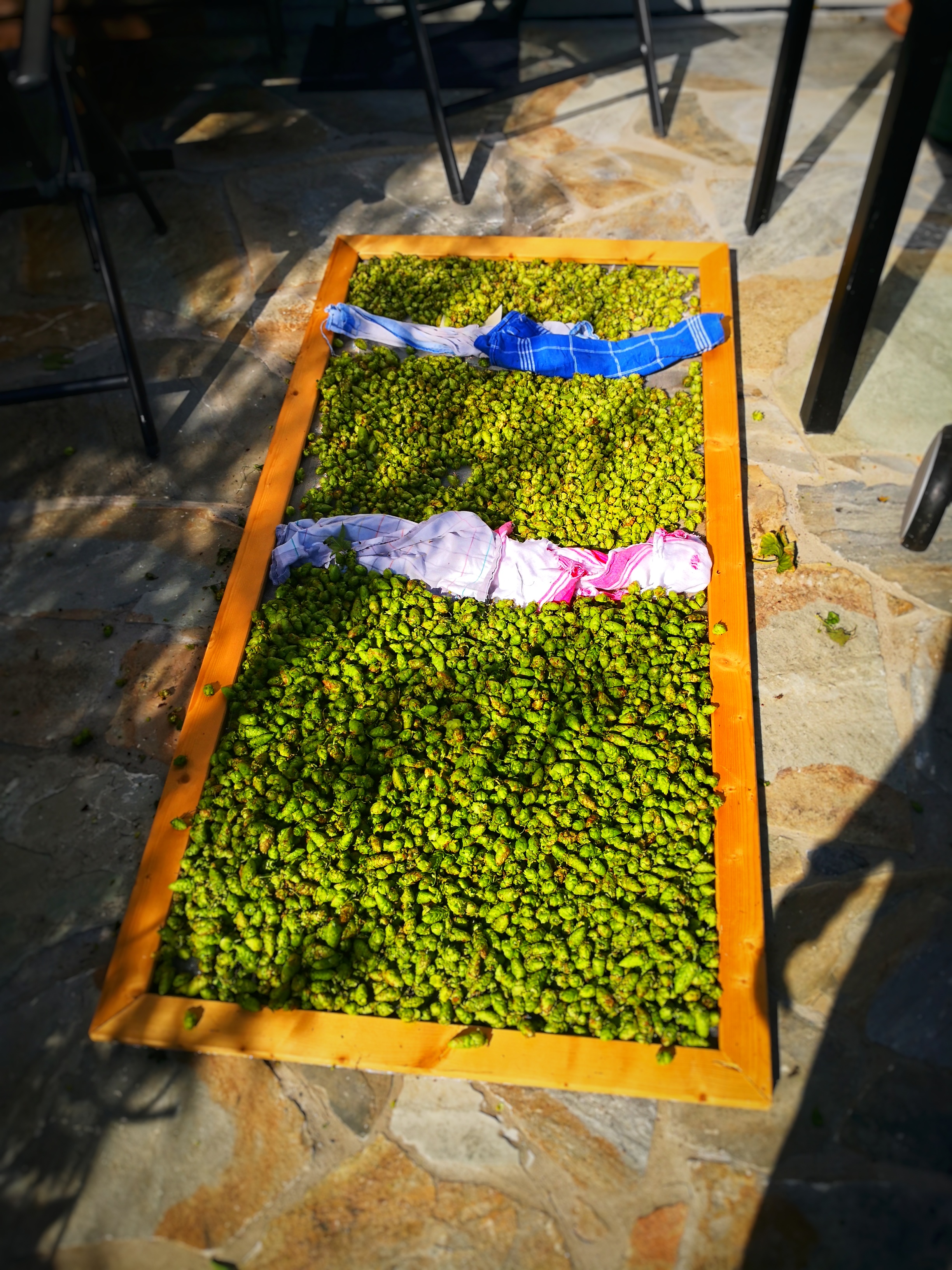 Das Zupfen war schnell erledigt und zum Aufwärmen gab es Fencheltee mit frischem Hopfen gepeppt.