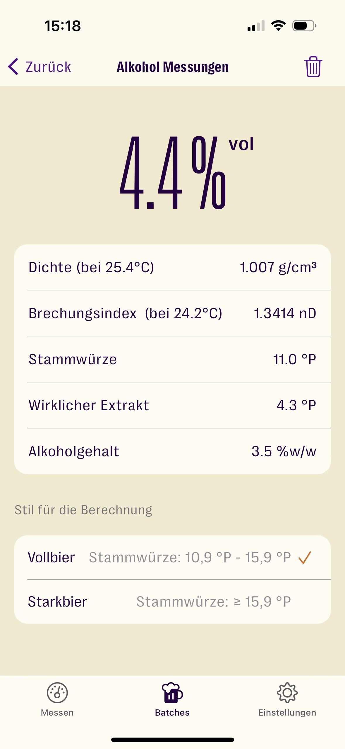 ... die Proben sind schon filtriert und am Entgasen.krasimir.h hat geschrieben: Freitag 30. Dezember 2022, 15:20 Die neuste Beta Version bietet die Möglichkeit fertiges Bier direkt mit EasyDens & SmartRef zu messen und folgende Daten zu bekommen.