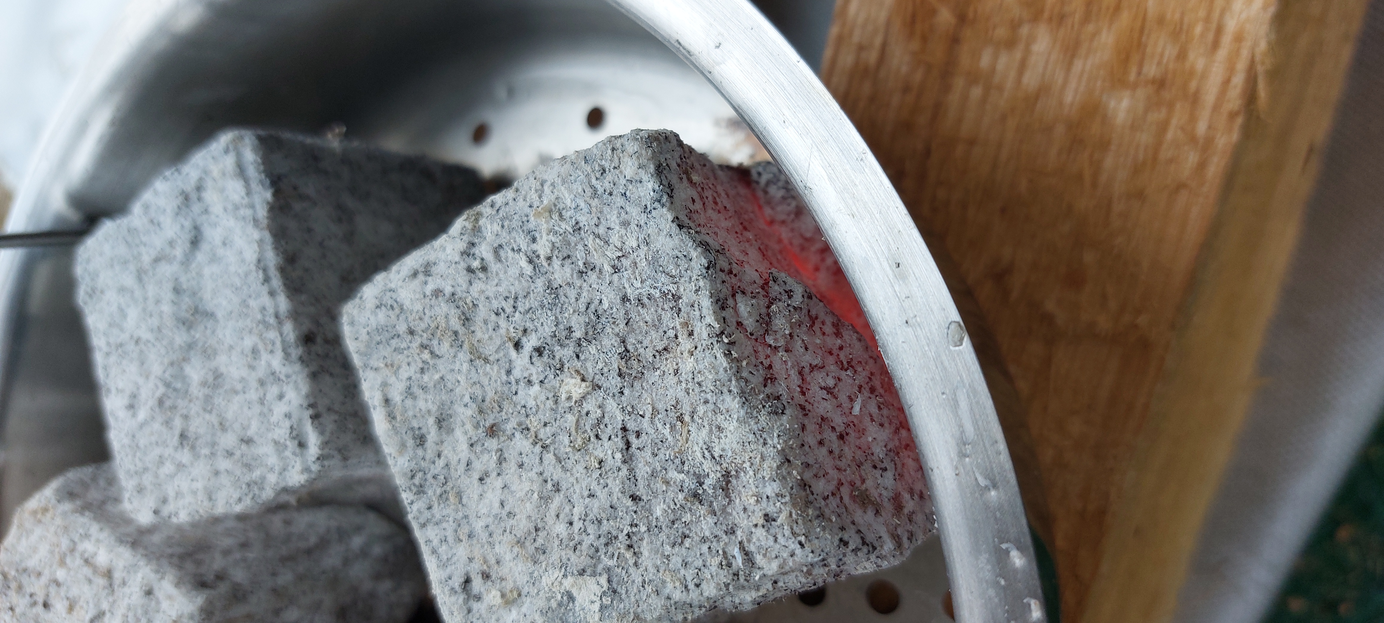 Ja genau, das sind einfache Granit-pflastersteine aus dem Baumarkt. Die Steine nochmal verwenden ist ohnehin keine Option, da sie nach dem ganzen Prozess alle feine Risse haben.