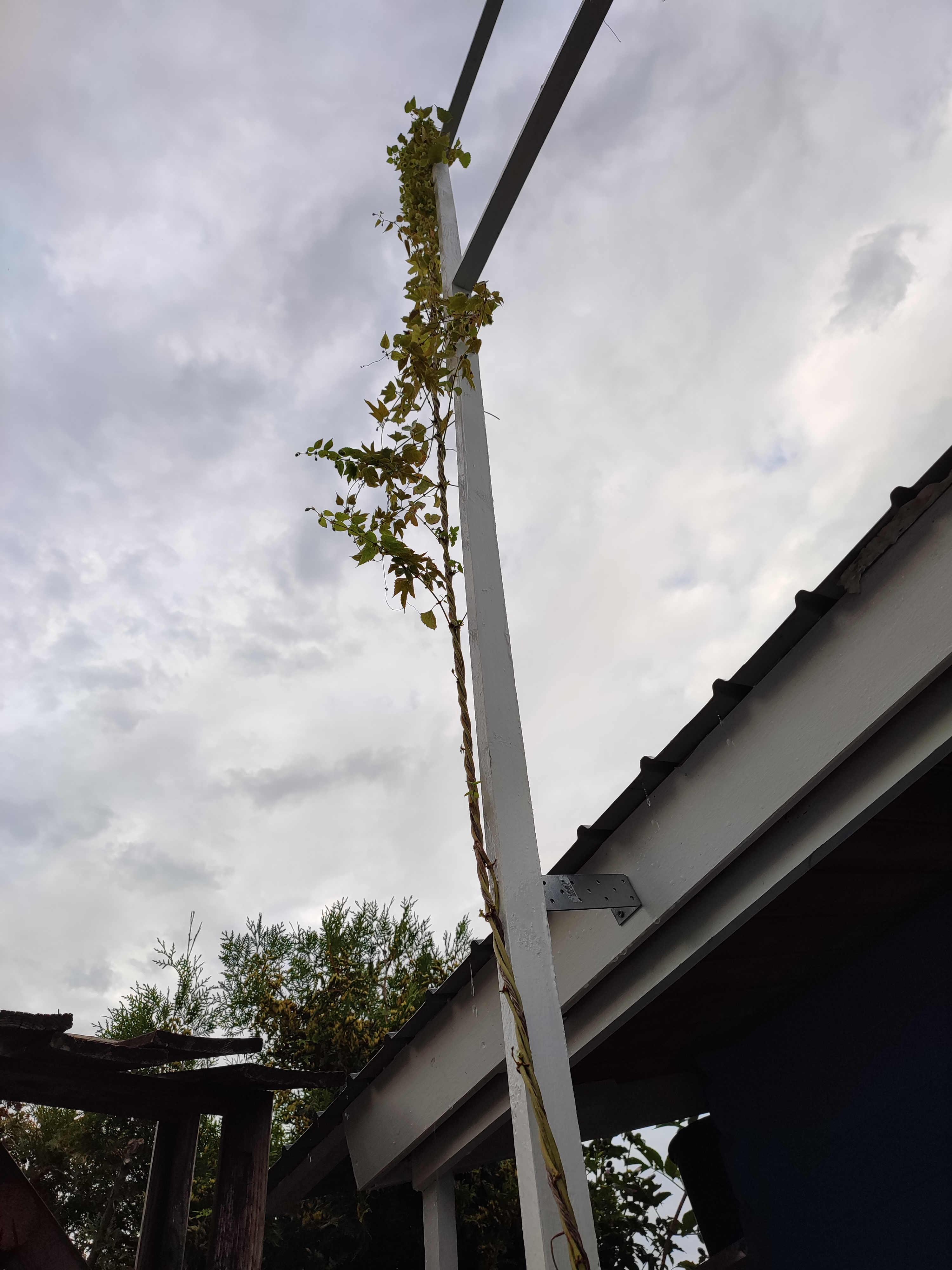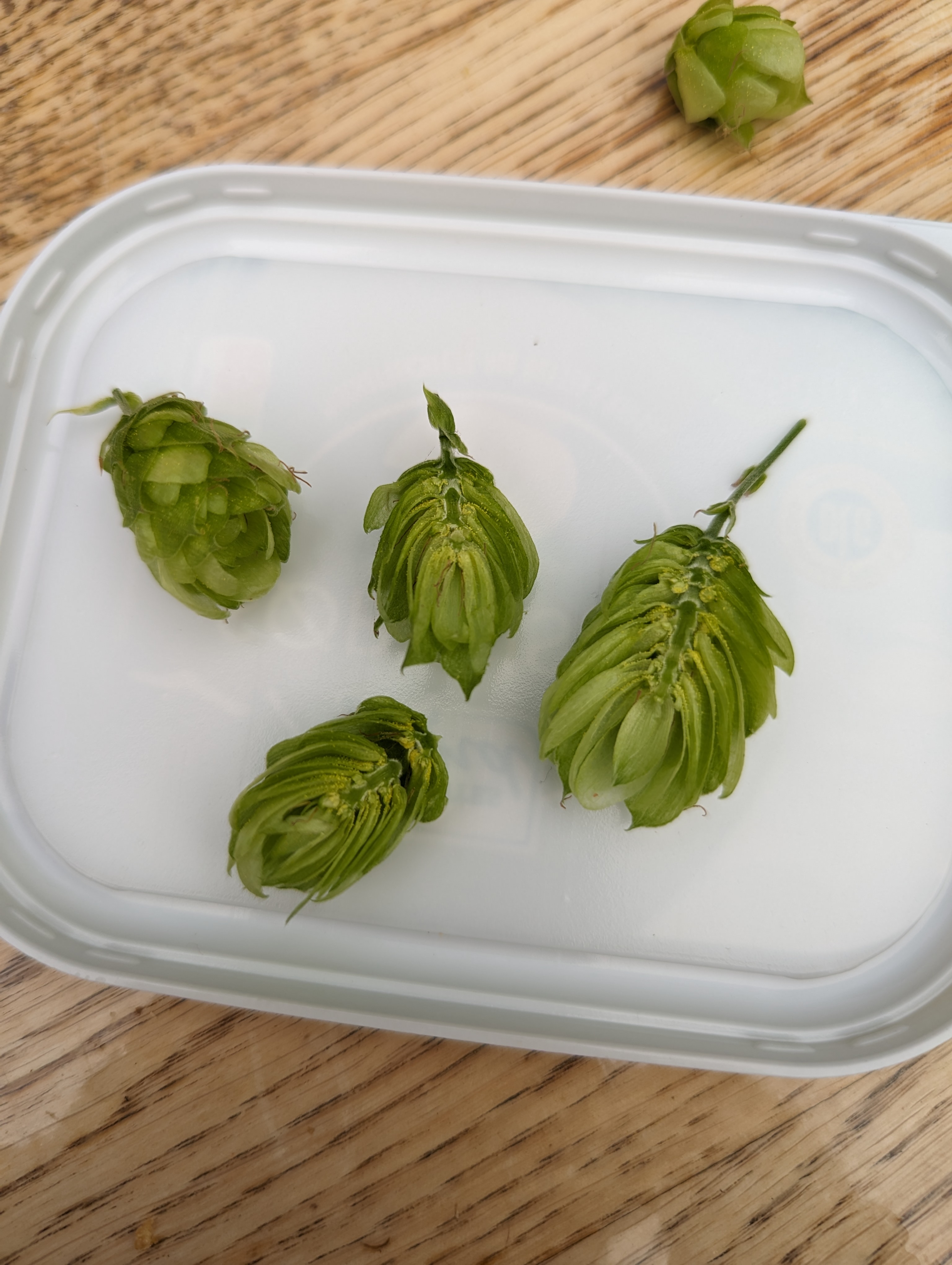 Du kannst selbst prüfen: Nimm eine Dolde mit brauner Spitze. Wenn sie beim Umknicken knackt und das Lupulin In Kügelchen zum Vorschein kommt und klebrig ist, ist Erntezeit. Wenn du dann zu lange zuwartest, verschenkst du Aroma! Oder du erntest sukzessive…