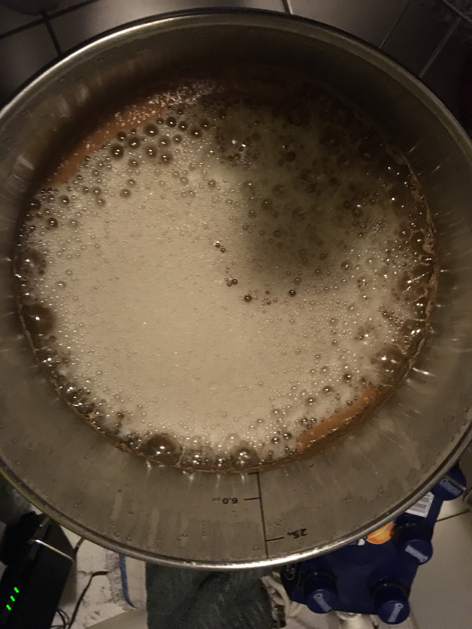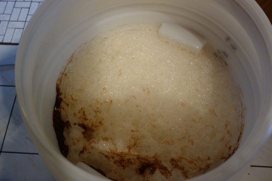 In dem einem Eimer gärt seid letzten Donnerstag ein Oatmeal Stout mit der Notti. Die stürmische Phase ist abgeflacht und es blubbert nur noch ein wenig, aber die Kräuseln sind gut 7cm hoch im Eimer gewesen.