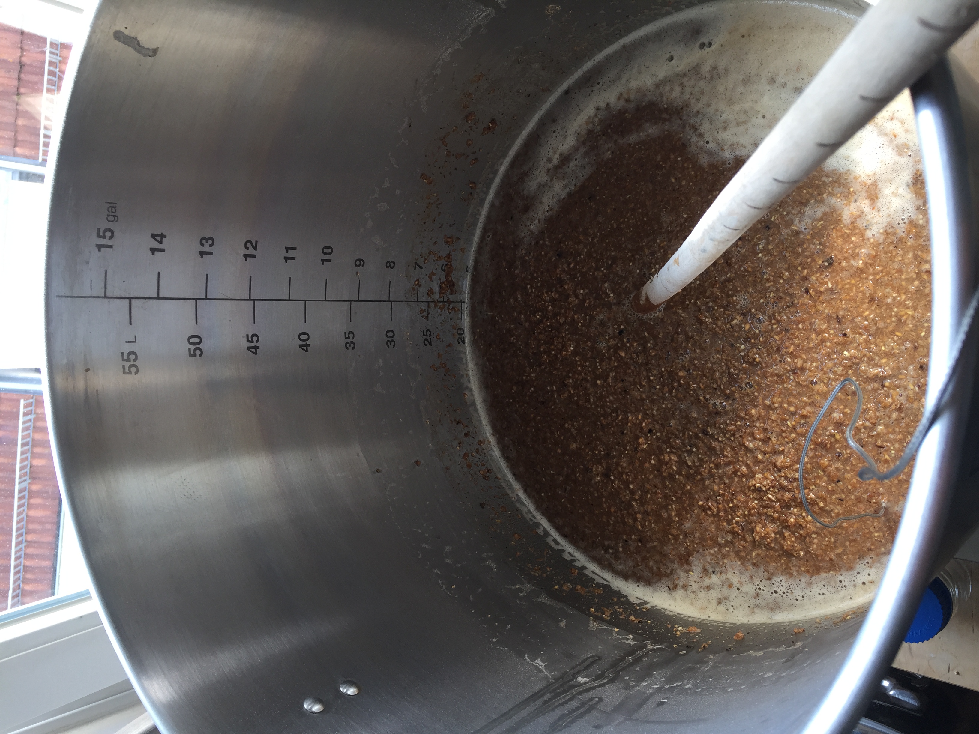 Schüttung: 95% Pale, 5% Cara hell => Kombirast bei 67° im Thermoport bis ich mit dem Rasenmähen und dem Garten als solches durch bin und das BBQ vorbereitet habe.