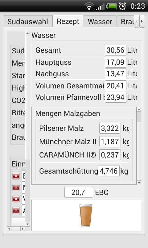 Am Anfang kann man Werte wie Sudhausausbeute usw. nur schätzen und diese dann den Erfahrungen nach anpassen.