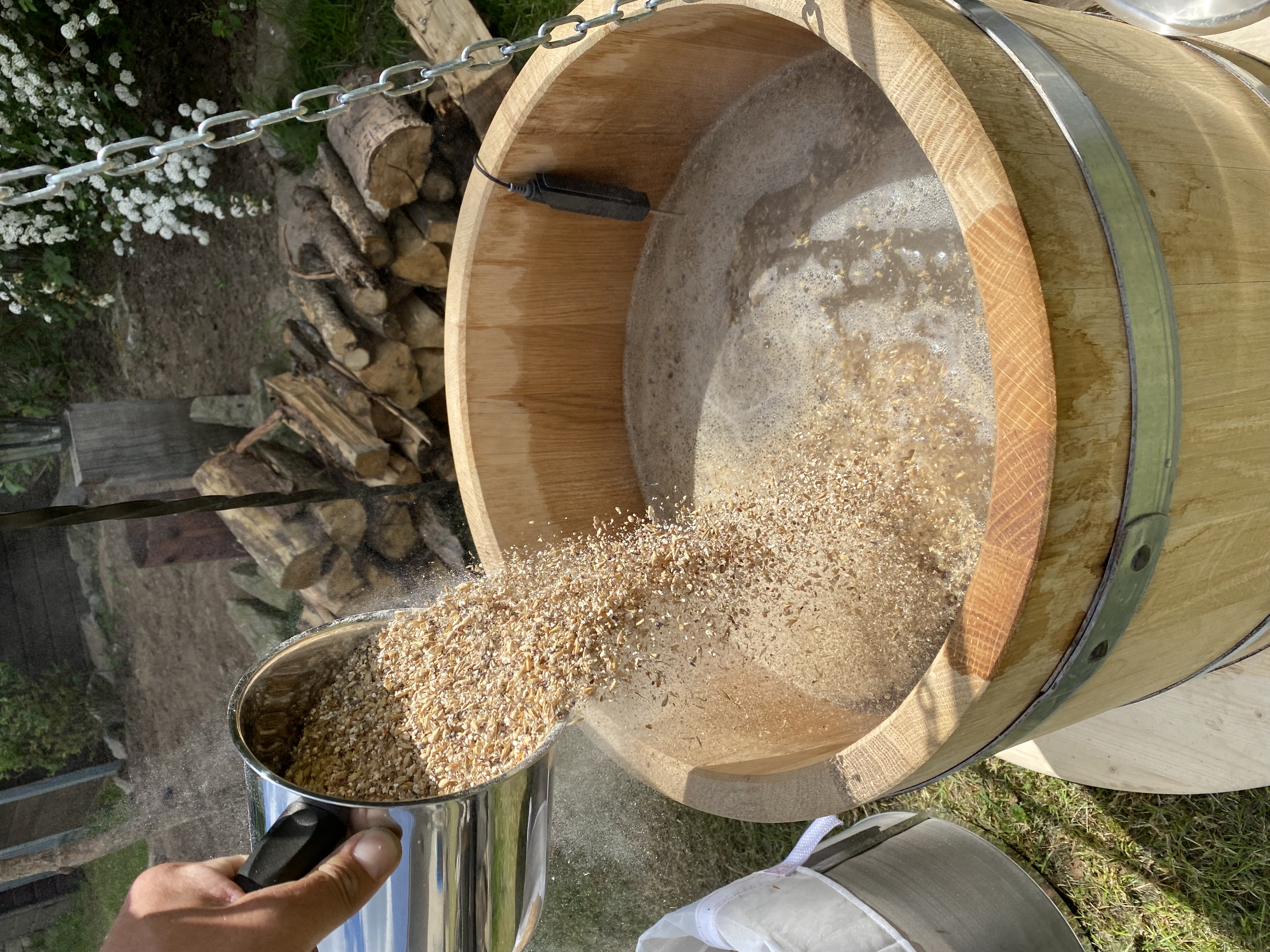 heute habe ich über wirklich anstrengende 9,5 Stunden ein Steinweizen gebraut.