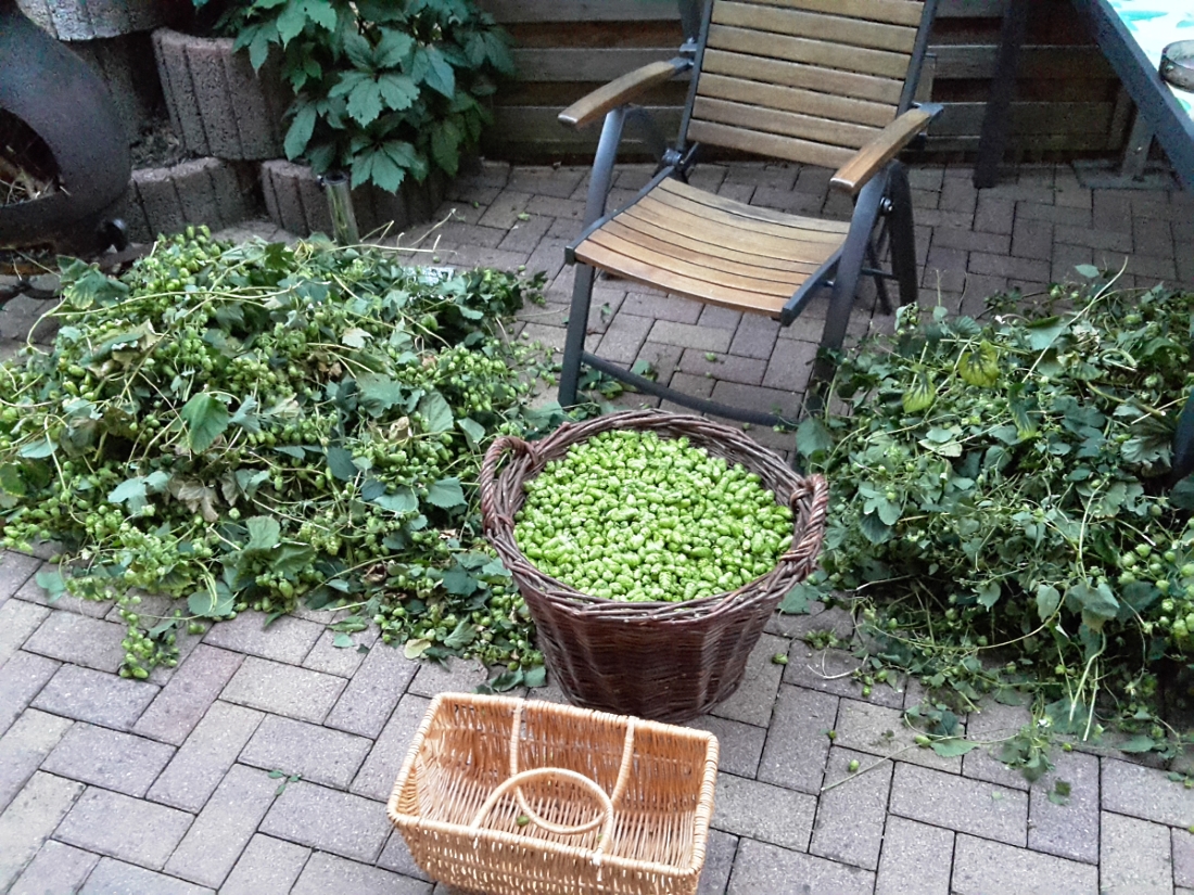 Ich war gestern nur geschockt zu sehen, wie schnell eine Hopfenpflanze trocknet. Kaum unten abgeschnitten, waren die Blätter trocken und bröselig, das hat keine 2h gedauert.