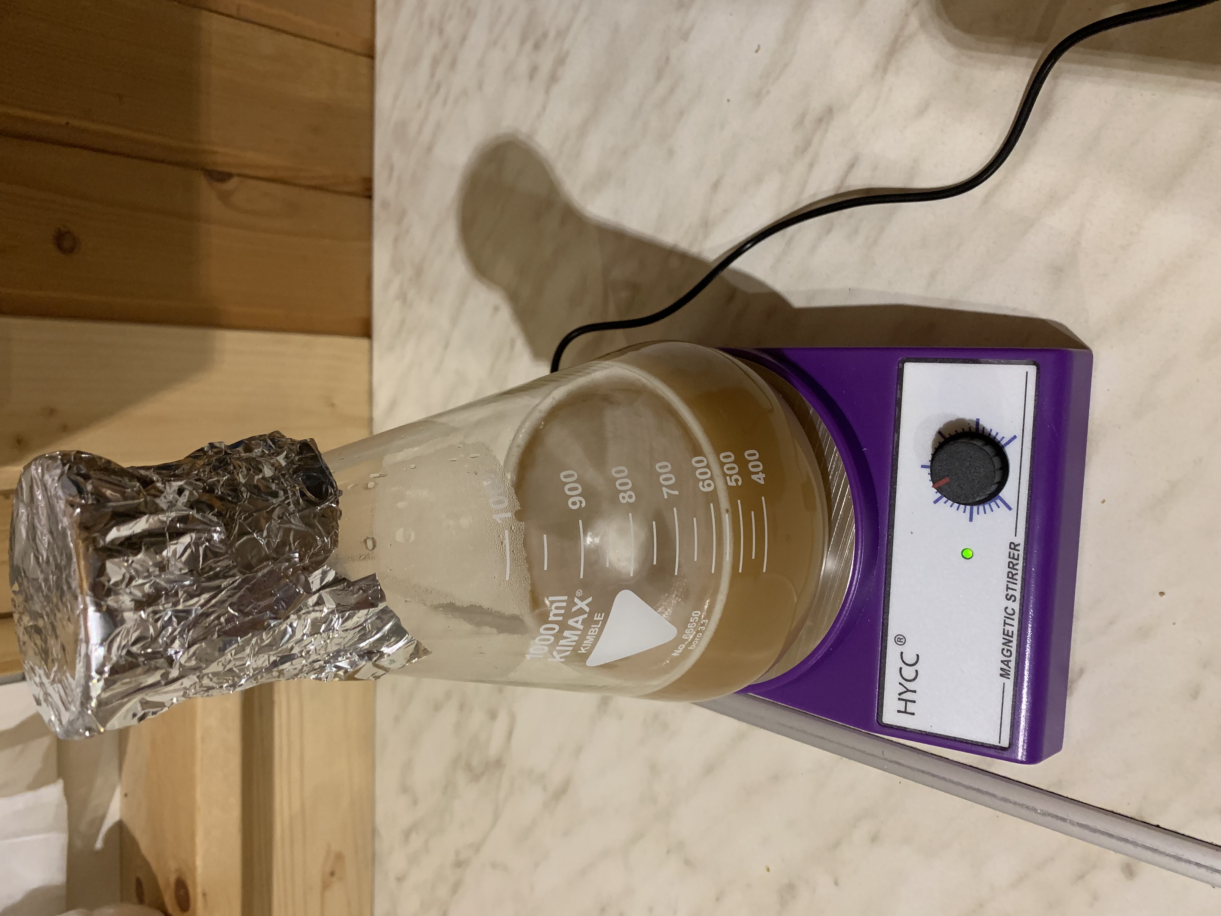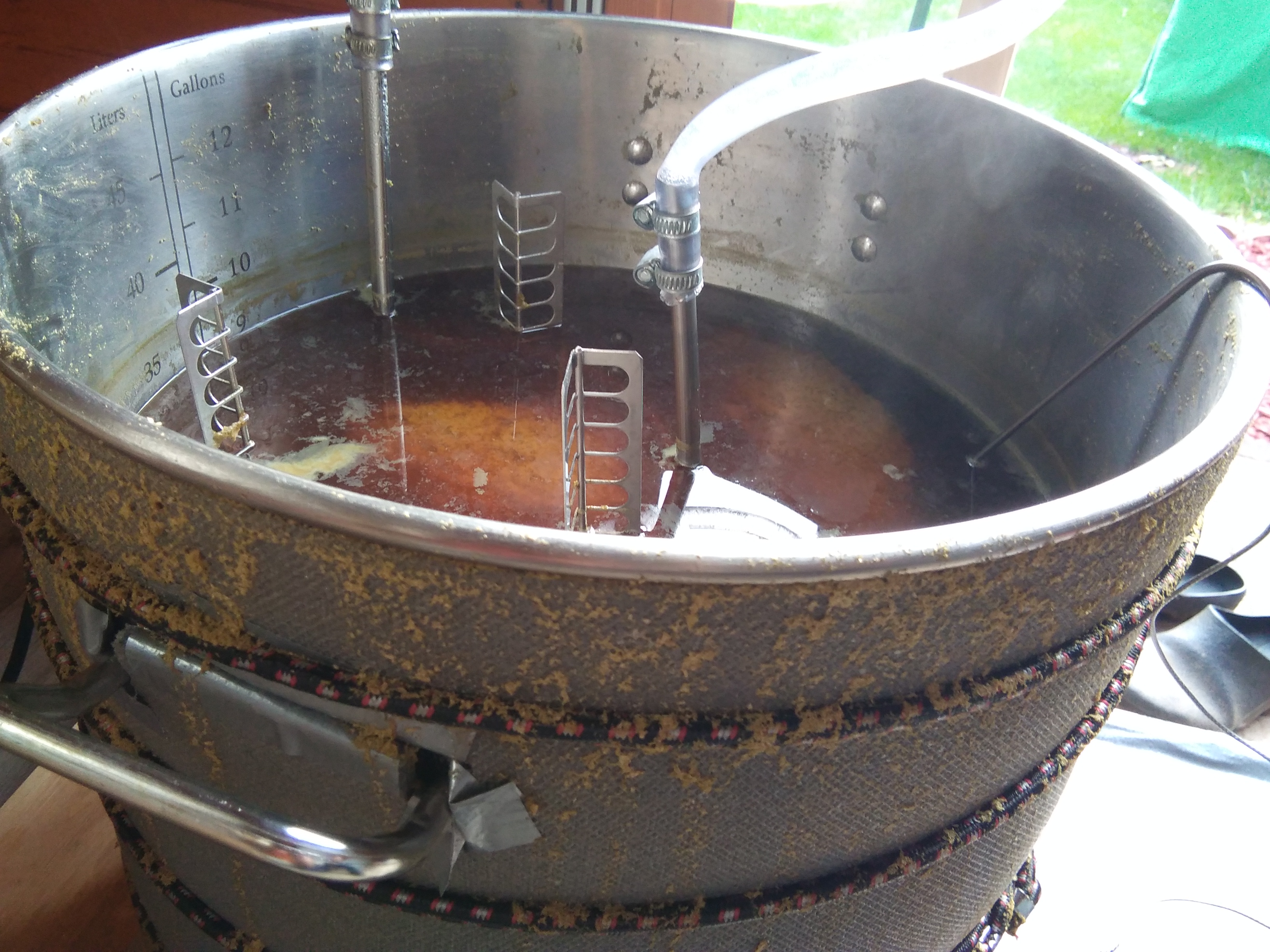 Leider beim Hochheizen der Würze den Deckel eine Sekunde zu lange drauf gelassen und schon übergekocht...