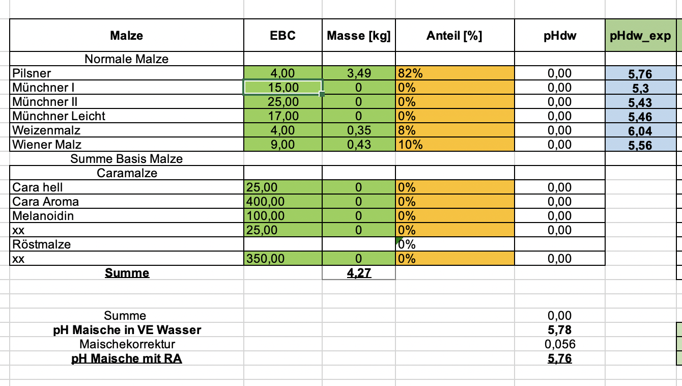 PH Wert laut Tabelle ( Ph Maische in VE Wasser) Ph Wert: 5,78