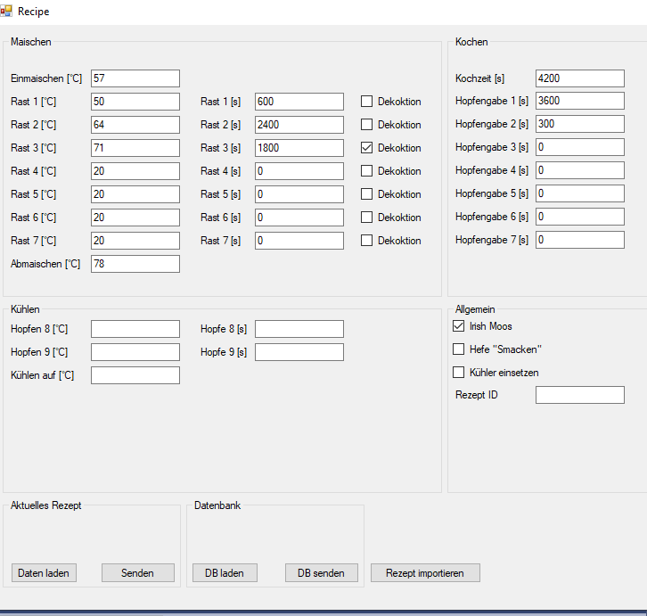 • Lesen und schreiben von Rezepten aus der DB in der Steuerung