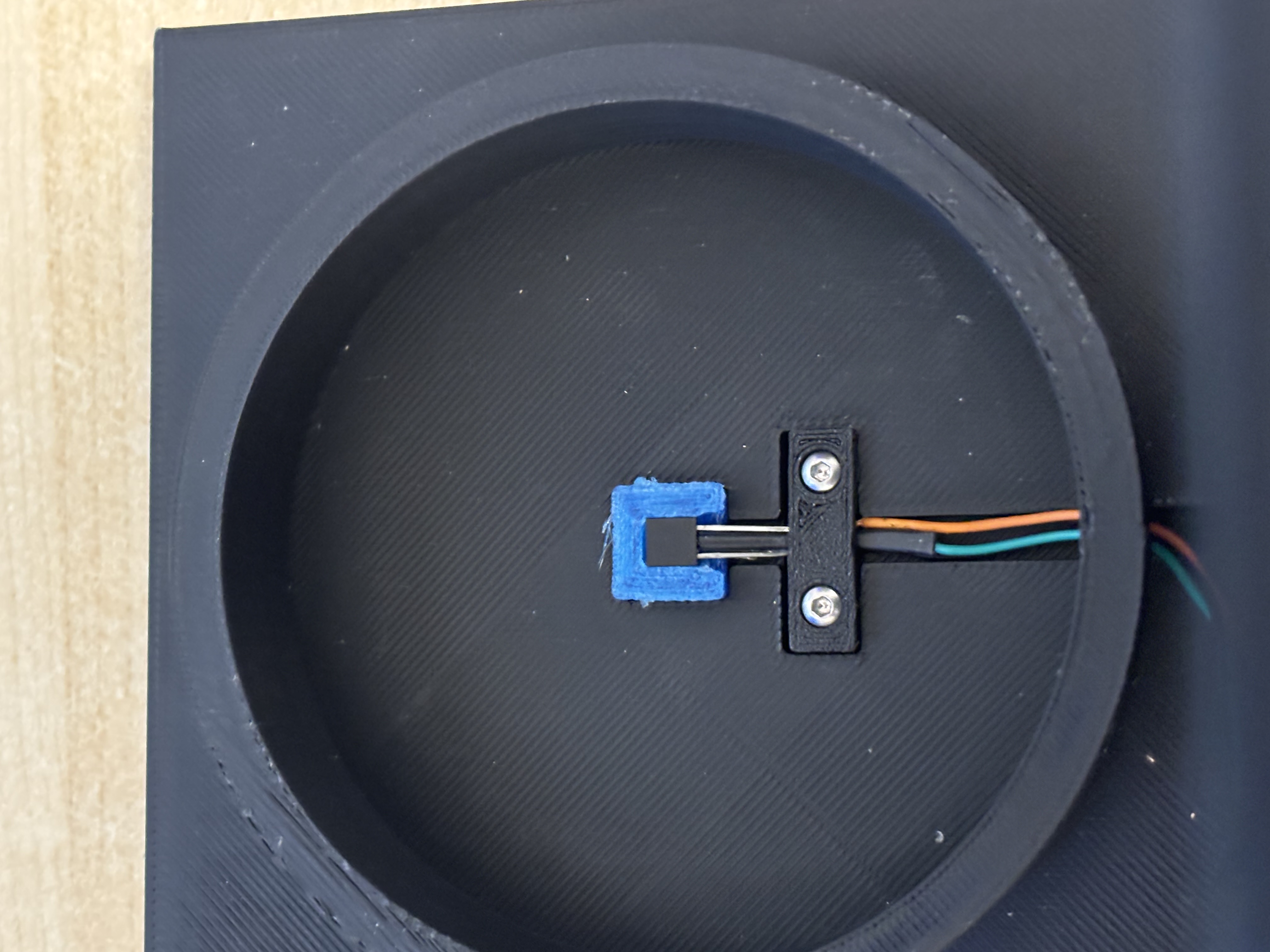 Der DS18B20 ist im Boden mit einem aus TPU gedruckten Halter integriert, damit er sich gegen den Flaschenboden drückt.